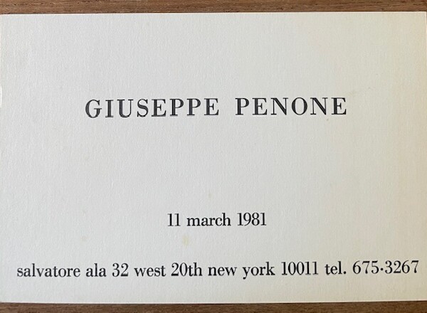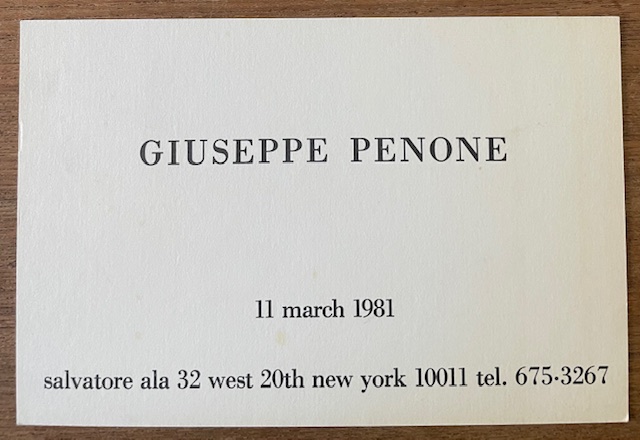 (Giuseppe Penone). Giuseppe Penone. Salvatore Ala, New York, 11 March 1981