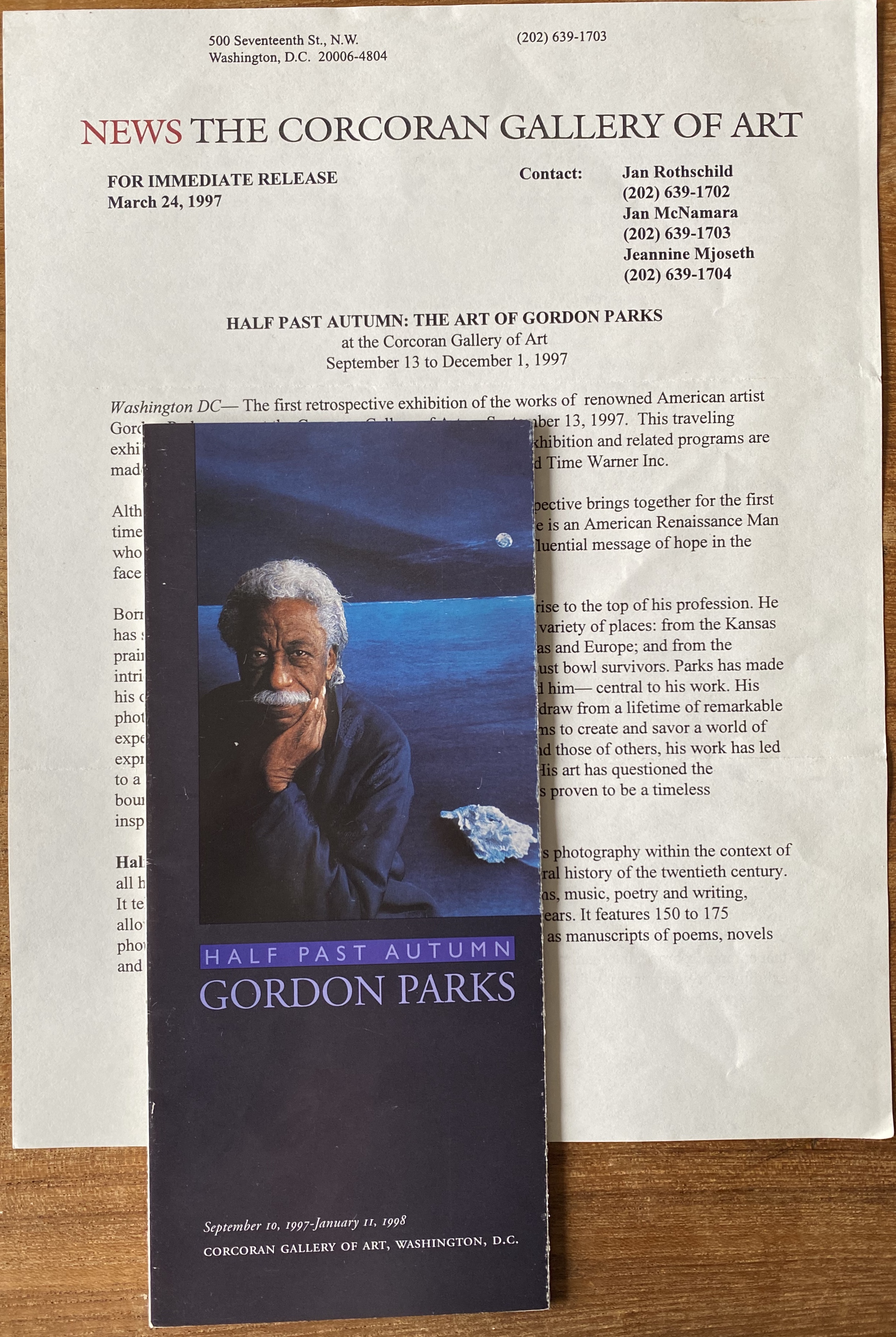 (Gordon Parks). Half Past Autumn: Gordon Parks. Corcoran Gallery of Art, Washington, D.C., September 10, 1997 – January 11, 1998