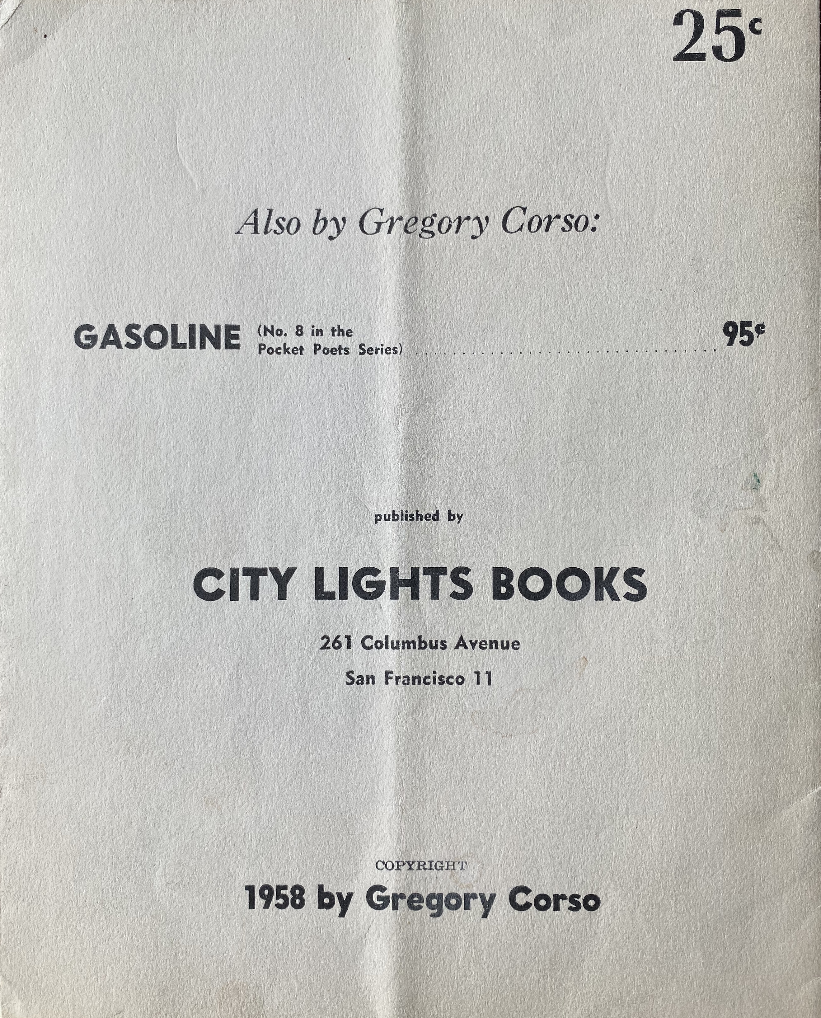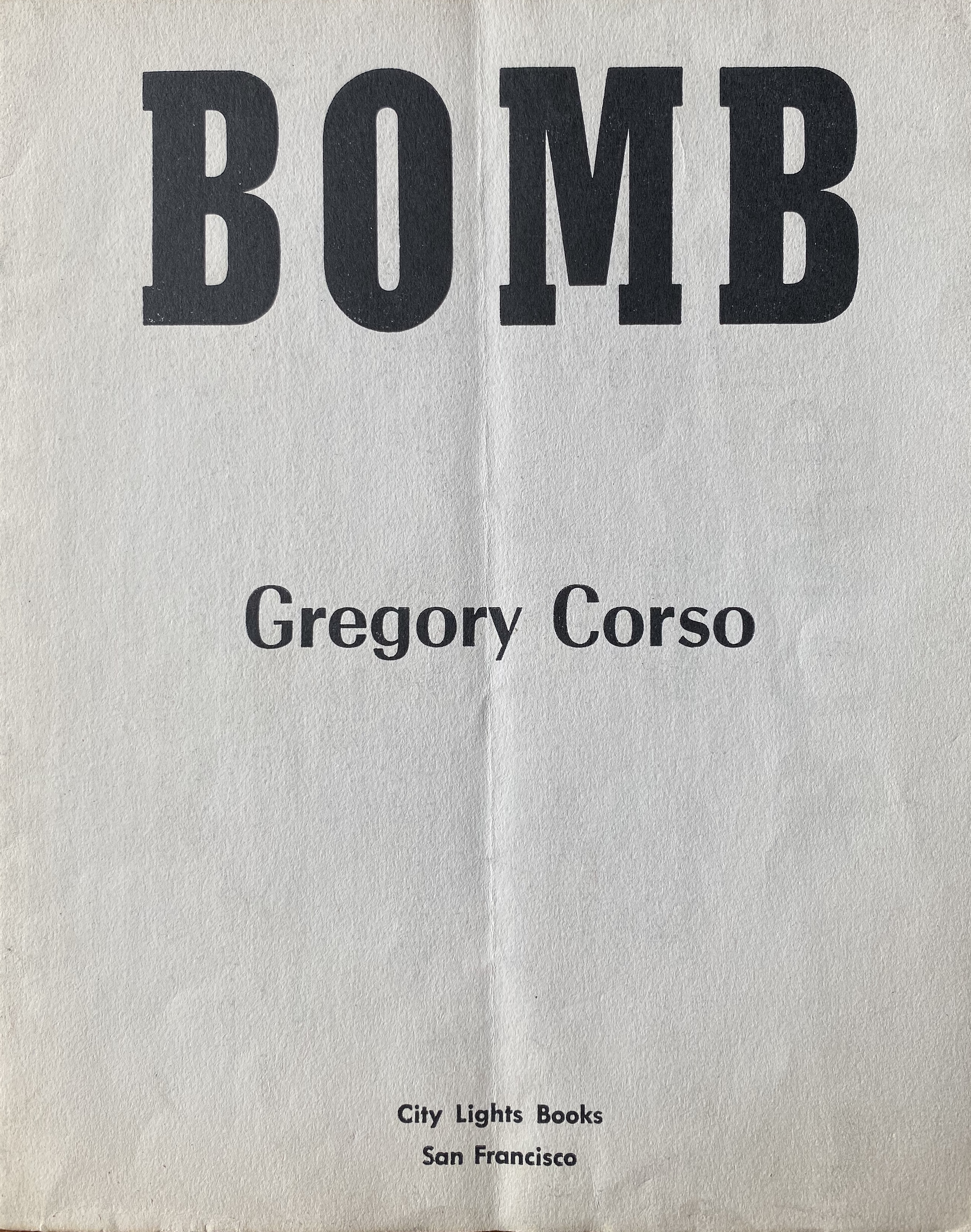 Gregory Corso. Bomb. San Francisco: City Lights Books, 1958
