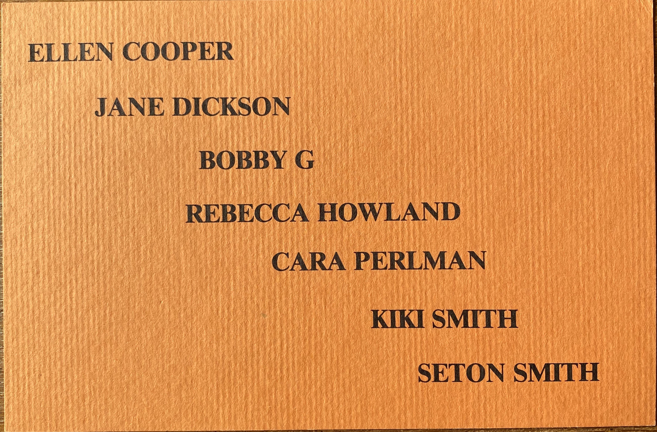 Categories: Announcements, New York art world, Women artists Tags: Bobby G, Cara Perlman, East Village artists, Ellen Cooper, Jane Dickson, Kiki Smith, Rebecca Howland, Seton Smith, Walter Robinson