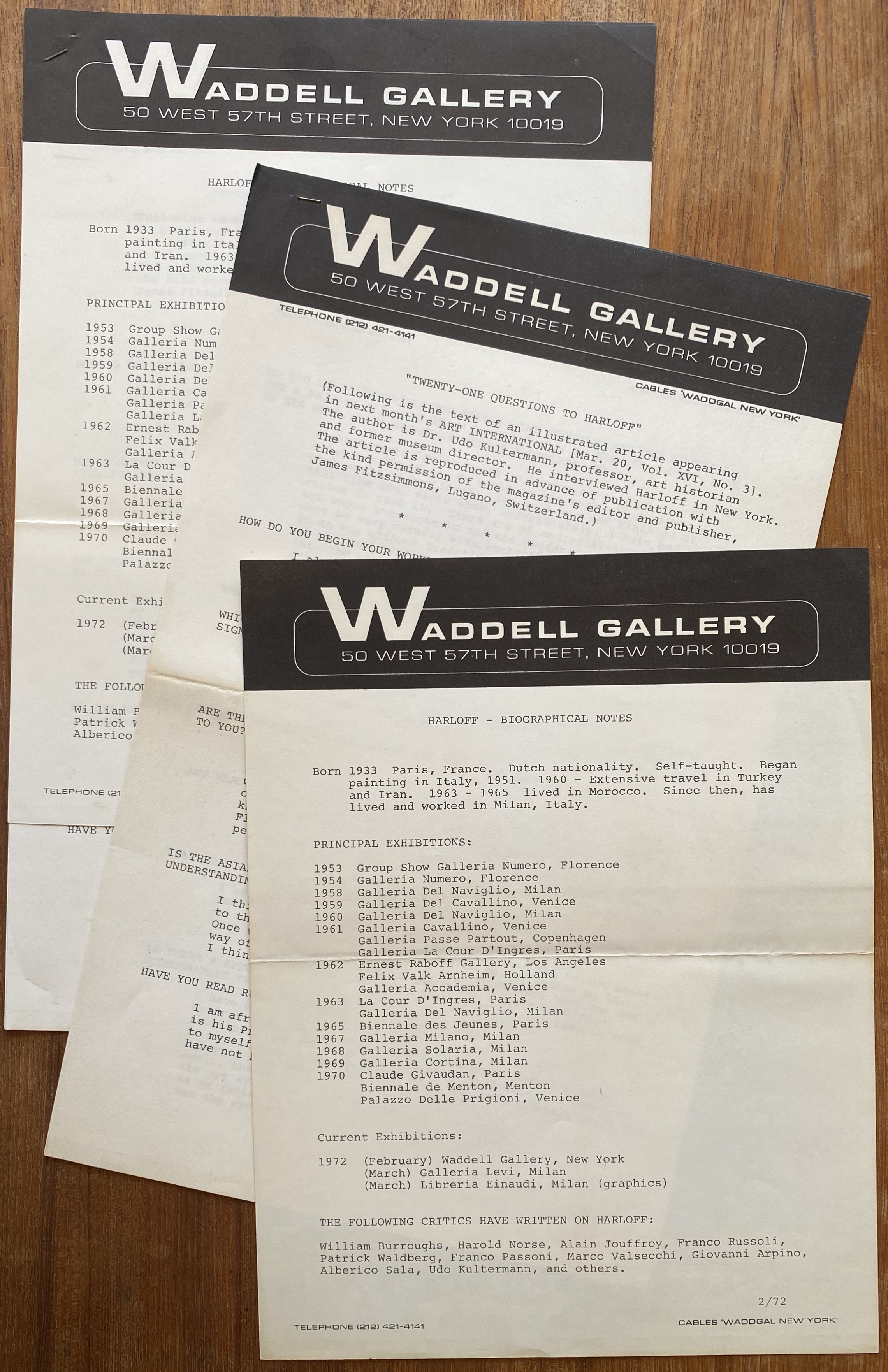 (Guy Harloff). “Twenty-one Questions to Harloff.” Waddell Gallery, New York, February 1972.