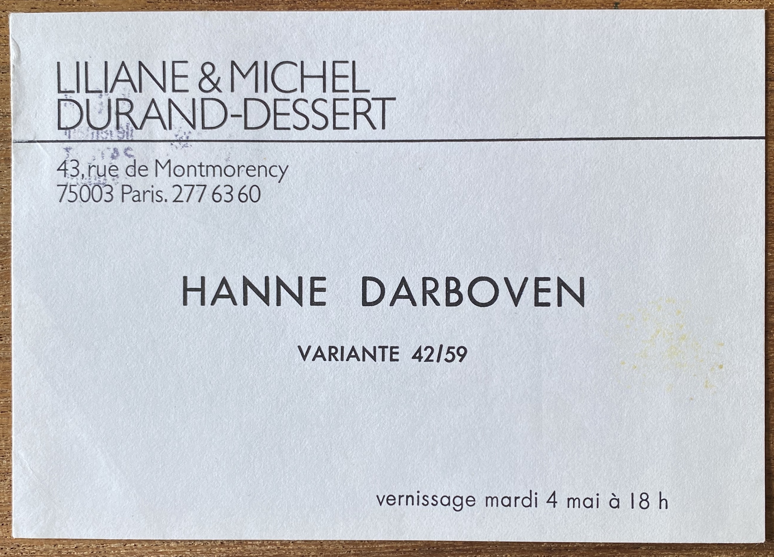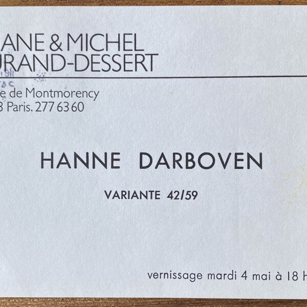 Hanne Darboven. Variante 42/59. Liliane & Michel Durand-Dessert, Paris. Vernissage 4 mai [1976]
