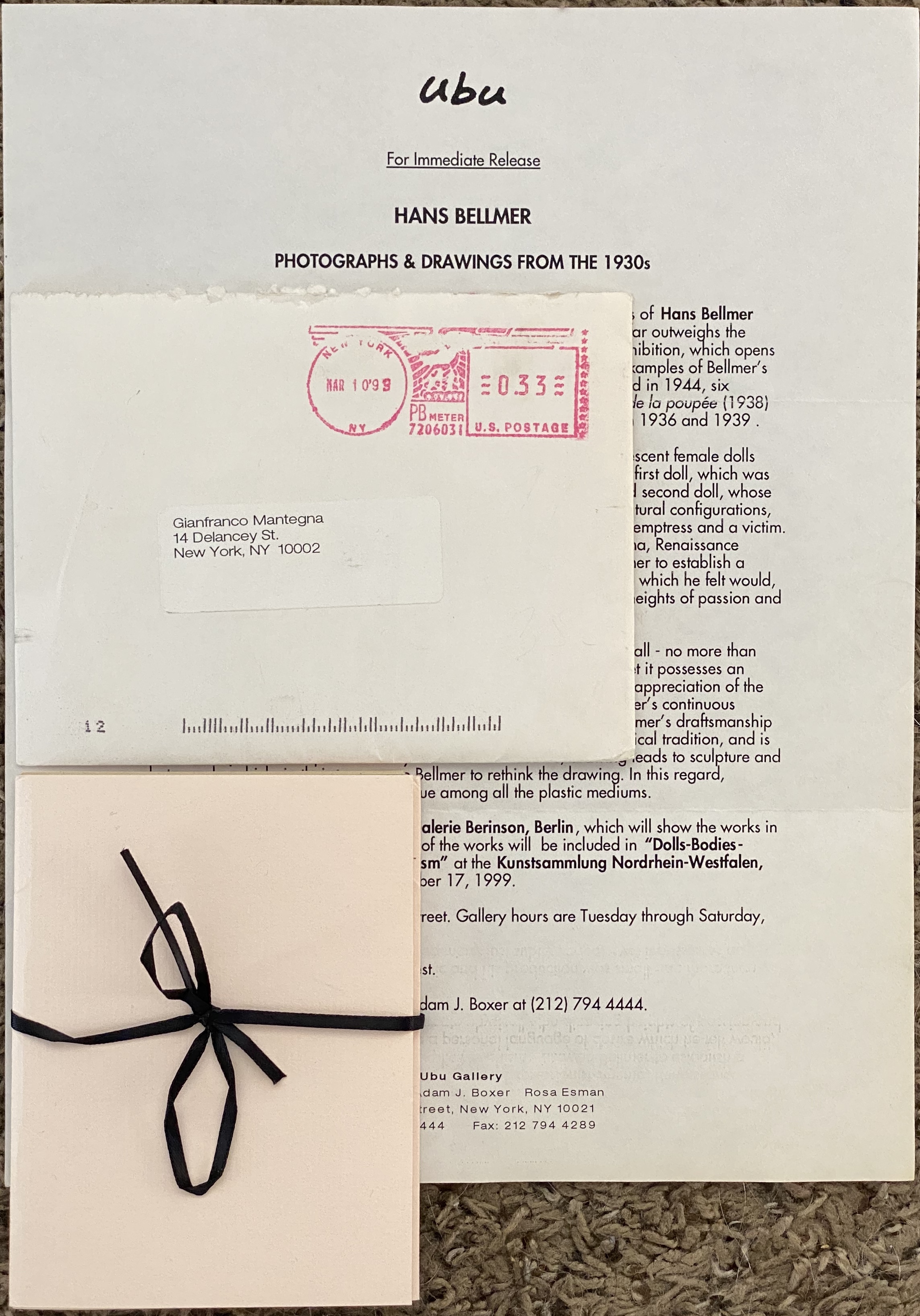 Hans Bellmer. Photographs & Drawings from the 1930s. Ubu, New York, March 20 – May 1, 1999