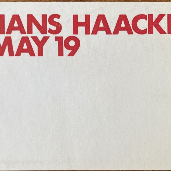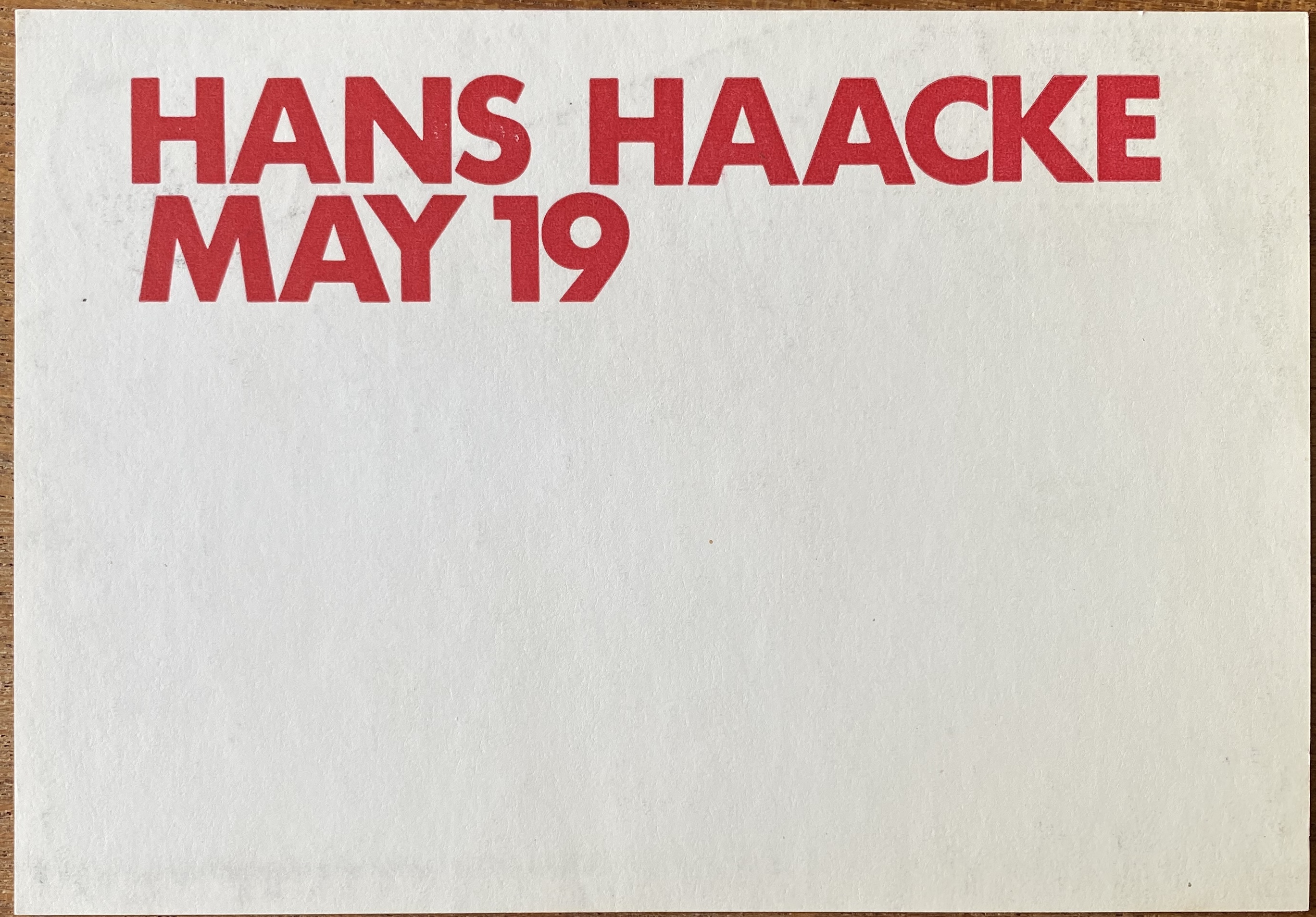 (Hans Haacke). Hans Haacke. Paul Maenz, Bruxelles, May 19, [1973]