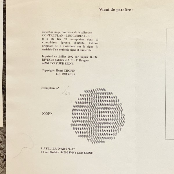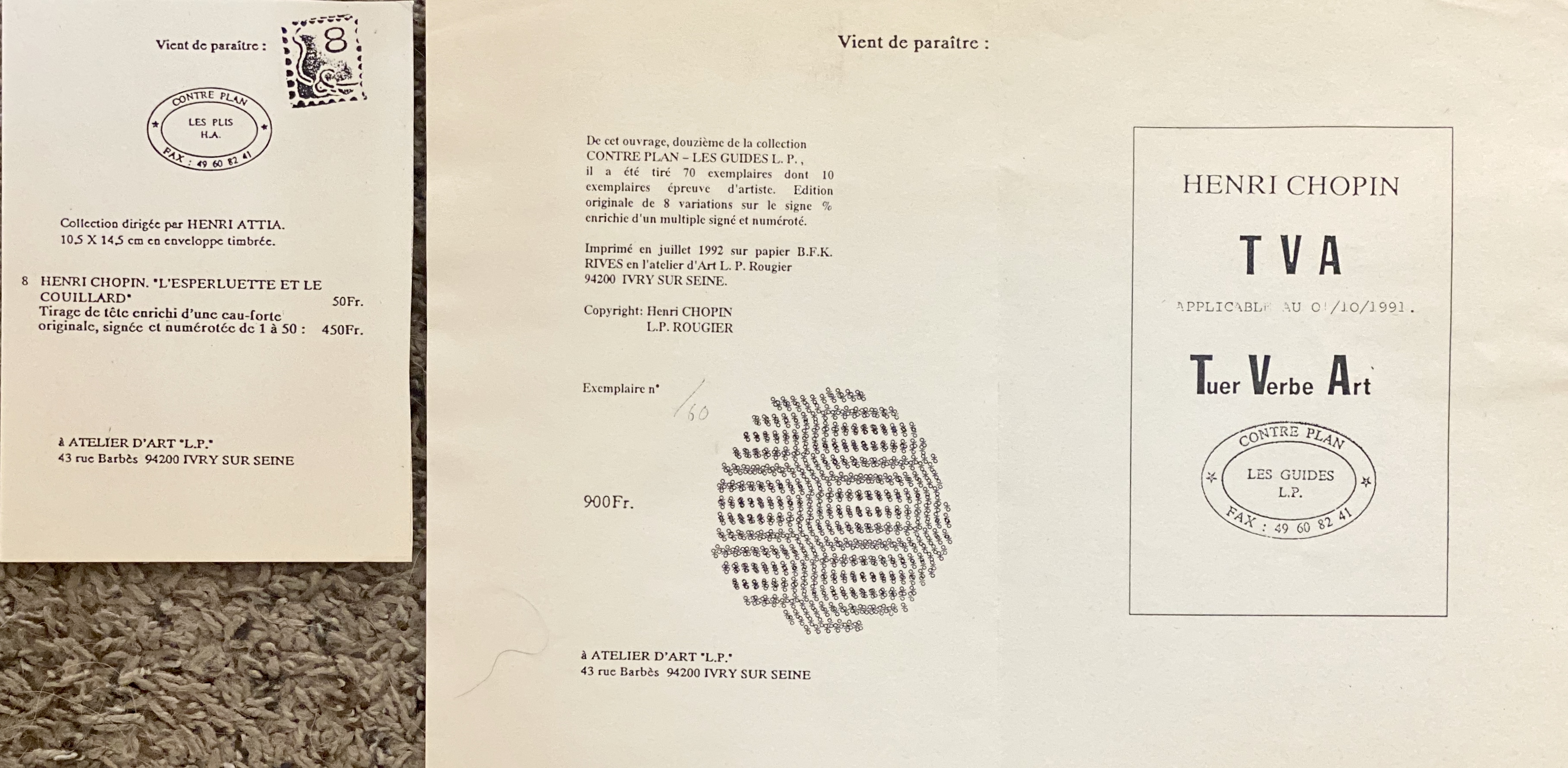 – L’esperluette et le couillard. (Contre Plan, Les Plis H.A.) Ivry-sur-Seine: Atelier