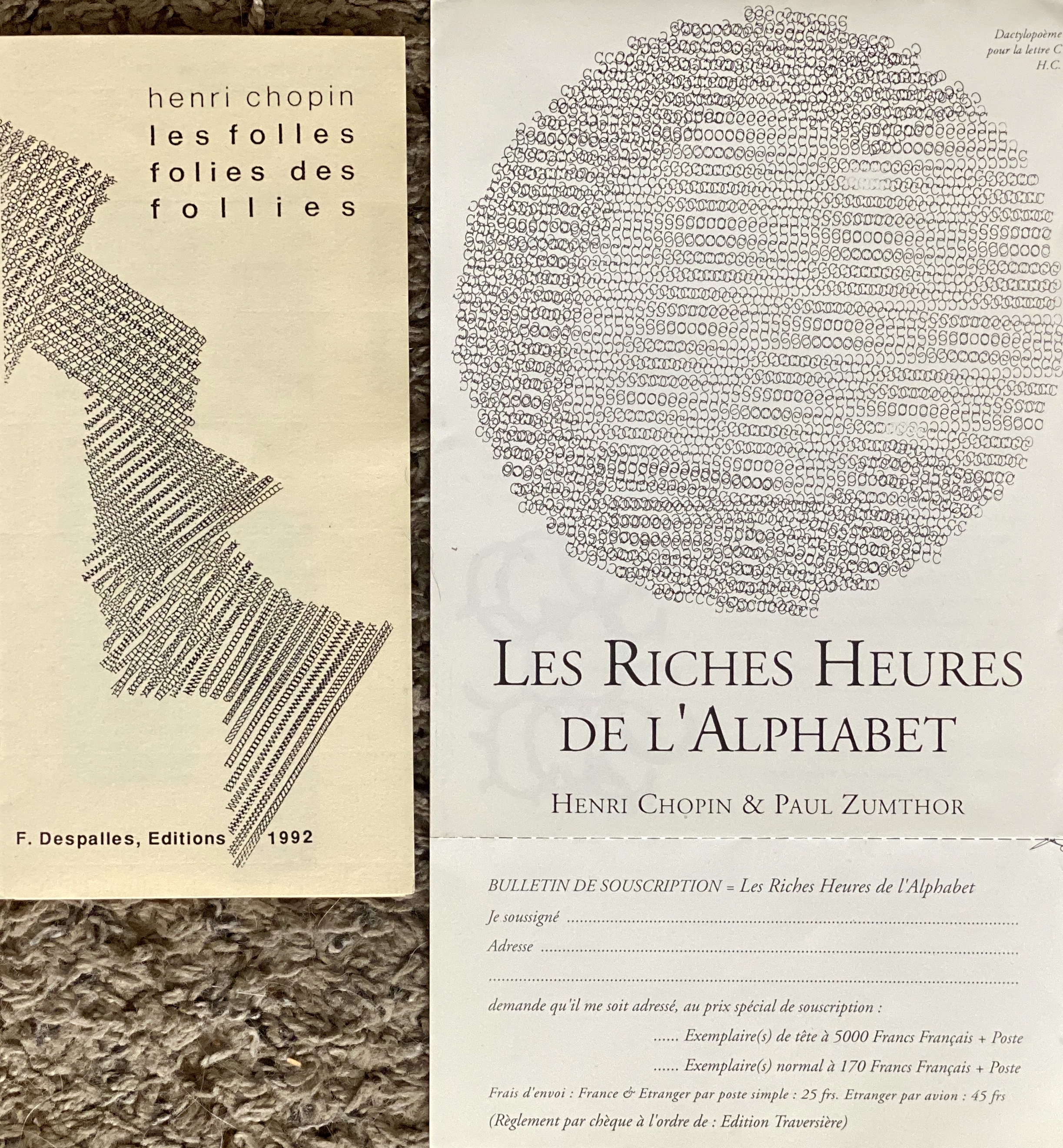 – Henri Chopin & Paul Zumthor. Les Riches Heures de l’Alphabet. Paris: Edition