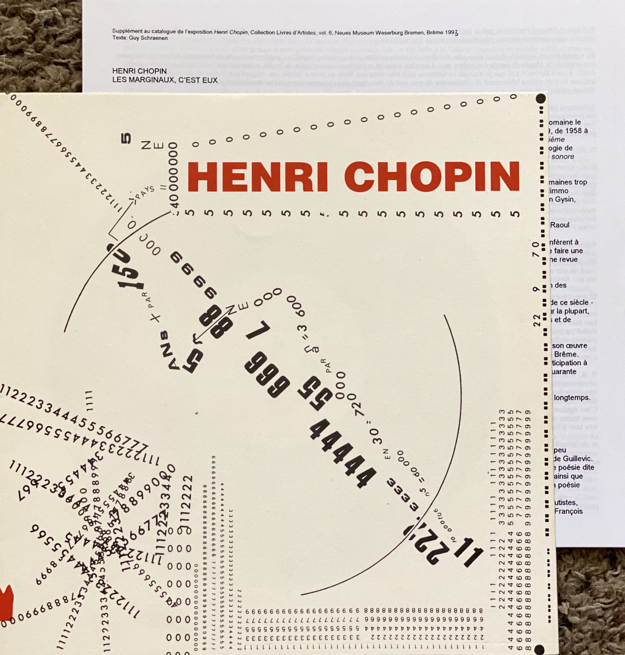 (Henri Chopin). Henri Chopin. Revue OU, Collection OU: Zeitschrift, Grafik, Bücher, Lautpoesie, Schallplatten. Neues Museum Westerburg Bremen, Bremen, 3. Juni – 10. Oktober 1993. (Sammlung der Künstlerbücher, Band 6)
