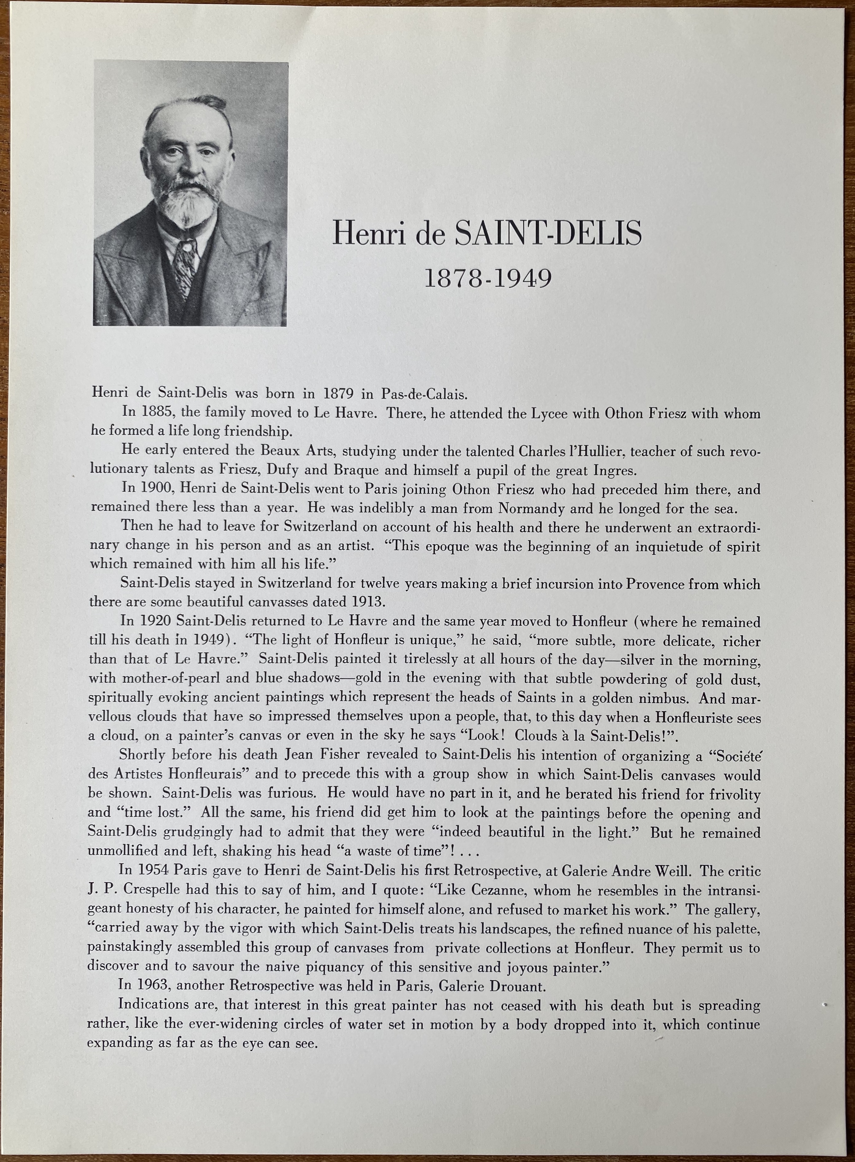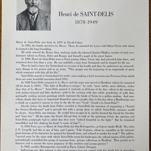 (Henri de Saint-Delis). Henri de Saint-Delis (1878-1949). No place, no date
