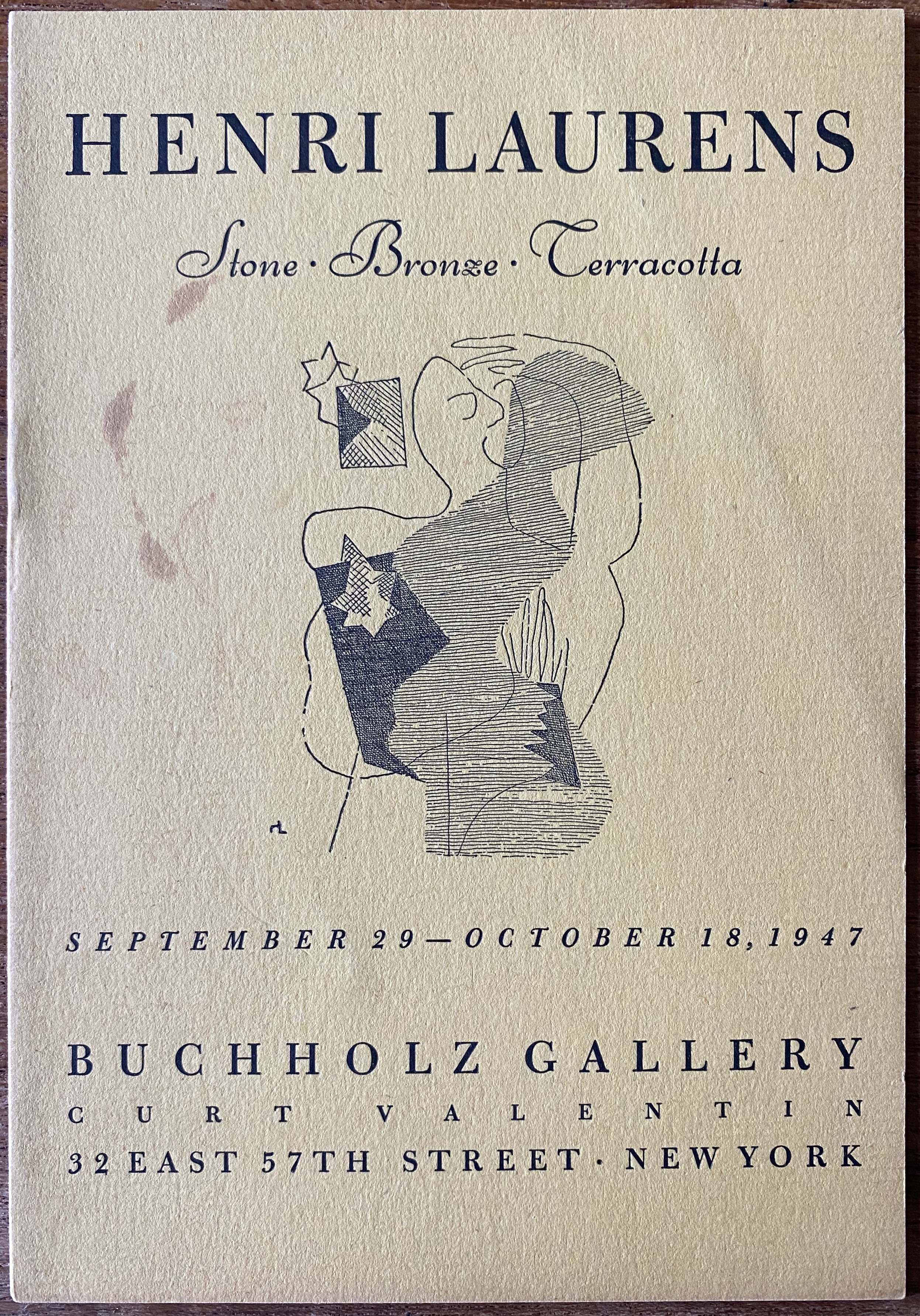 Henri Laurens. Stone, Bronze, Terracotta. (Cover title). Buchholz Gallery, New York, September 19 – October 18, 1947