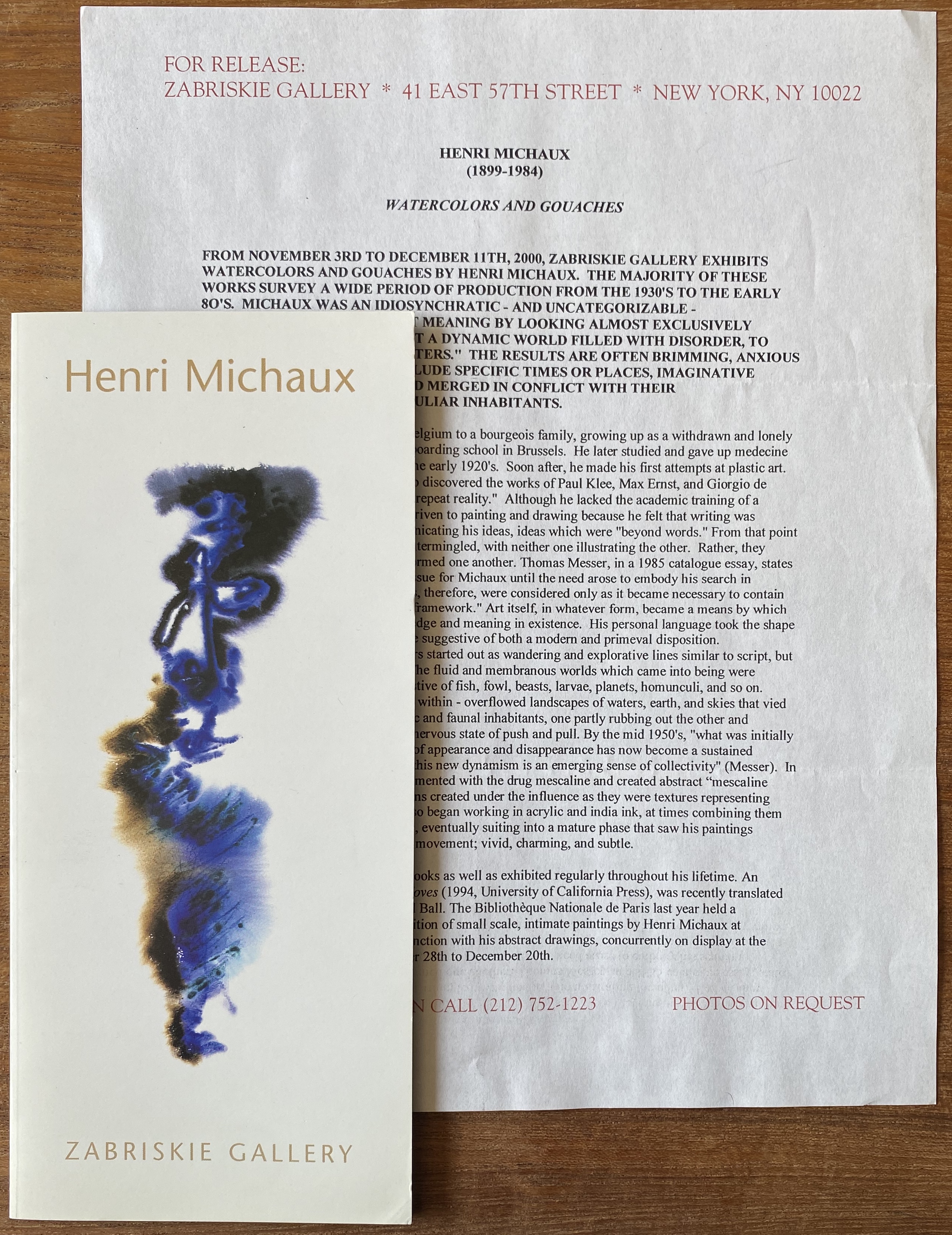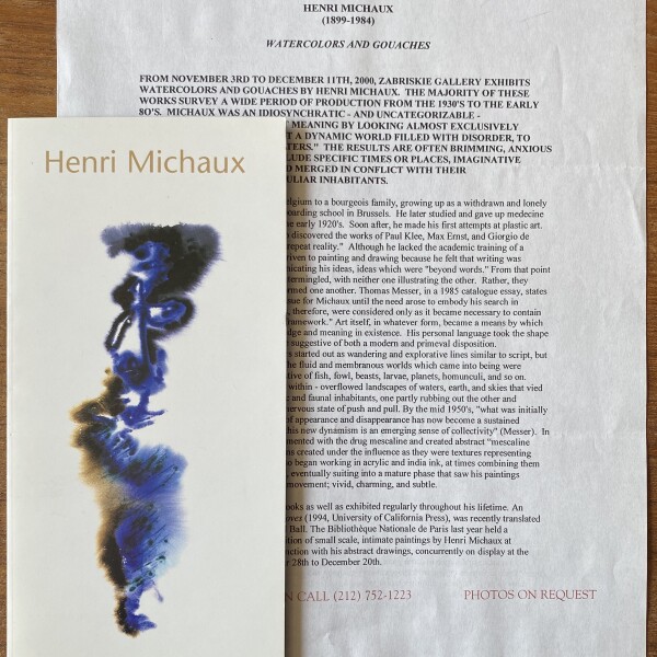 Henri Michaux. Watercolors and Gouaches. Zabriske Gallery, New York, November 3 – December 16, 2000