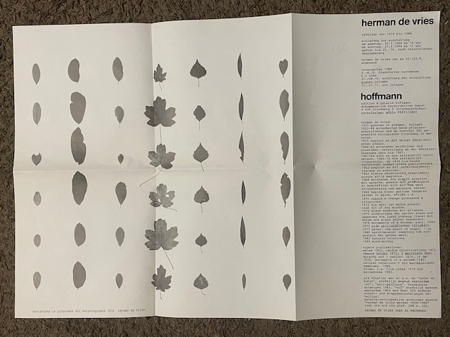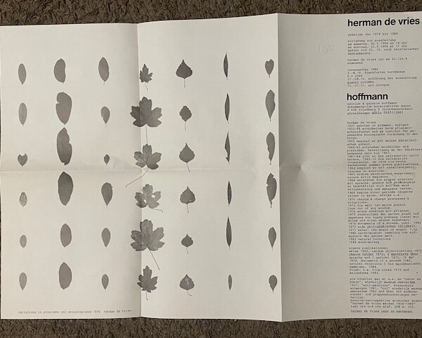 Herman de Vries. Arbeiten von 1974 bis 1984. Hoffmann, Görbelheimer Mühle, 22., 23. 9. – 25. 10. 1984
