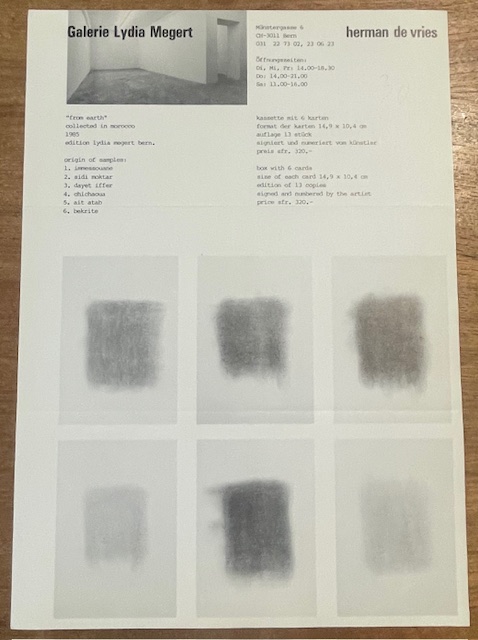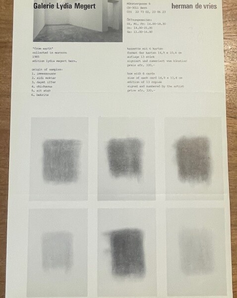 Herman de Vries. “From Earth”. Collected in Morocco, 1985. Galerie Lydia Megert, Bern, 1985