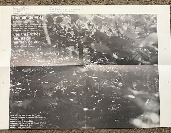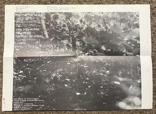 Herman de Vries. “les très riches heures de herman de vries”. Galerie Lydia Megert, Bern, 20. Oktober – 20. November 1982