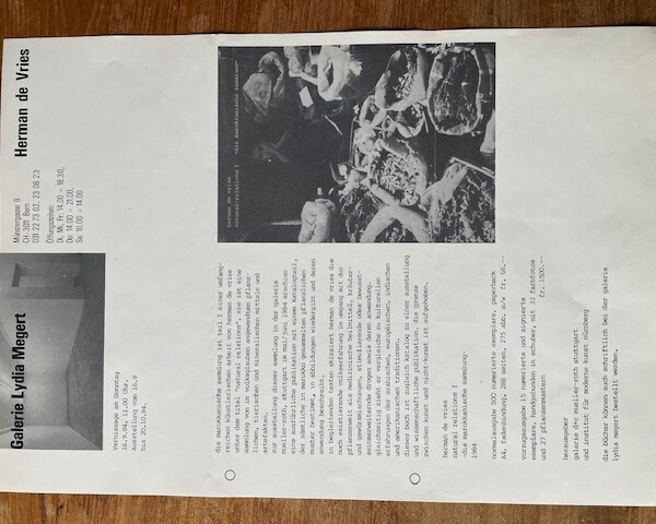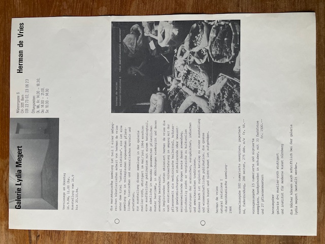 Herman de Vries. Natural relations I – Die marokonische Sammlung. Galerie Lydia Megert, Bern, 16. 9. – 20. 10. 1984
