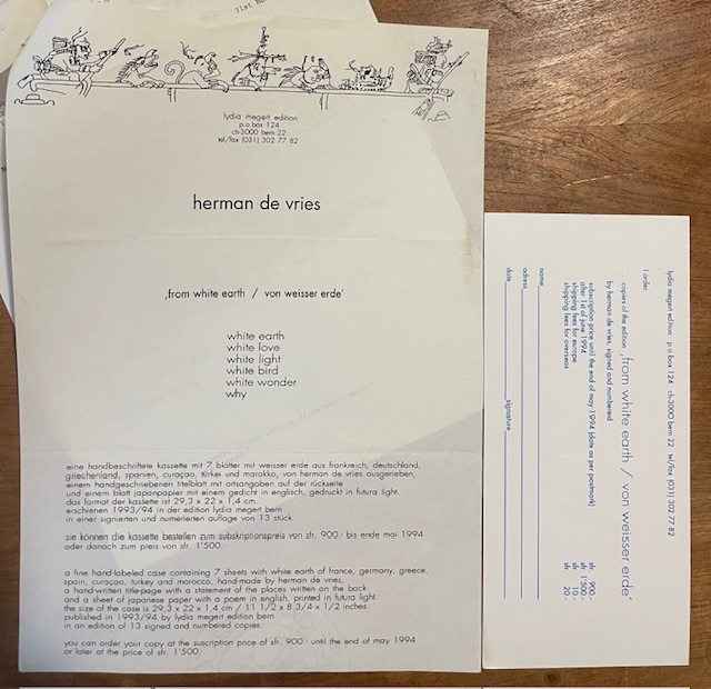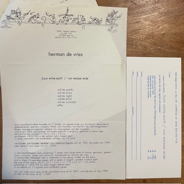 Herman de Vries. Von weisser Erde. Lydia Megert Edition, Bern, 1994