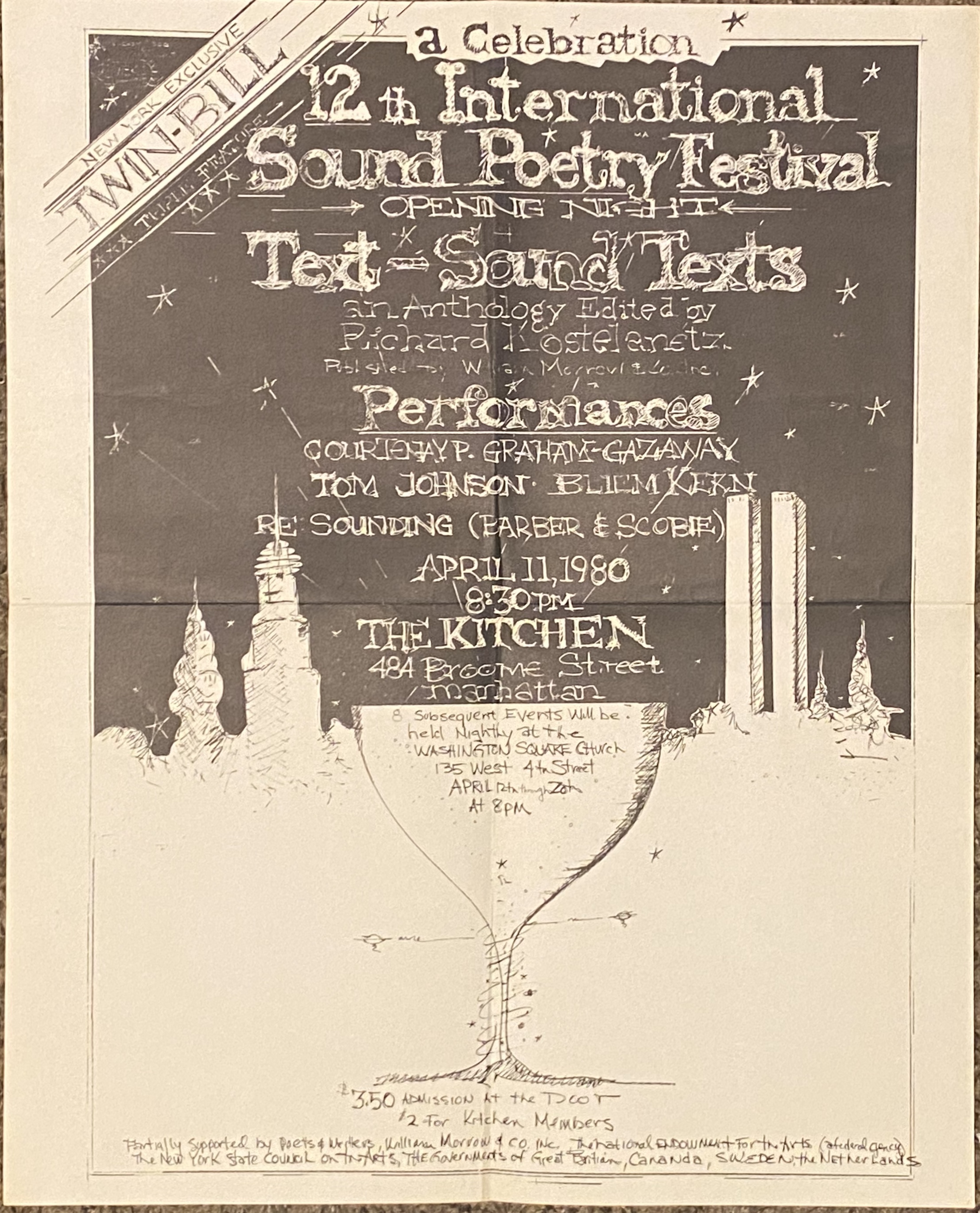 International Sound Poetry Festival, 12th. The Kitchen, April 11, 1980