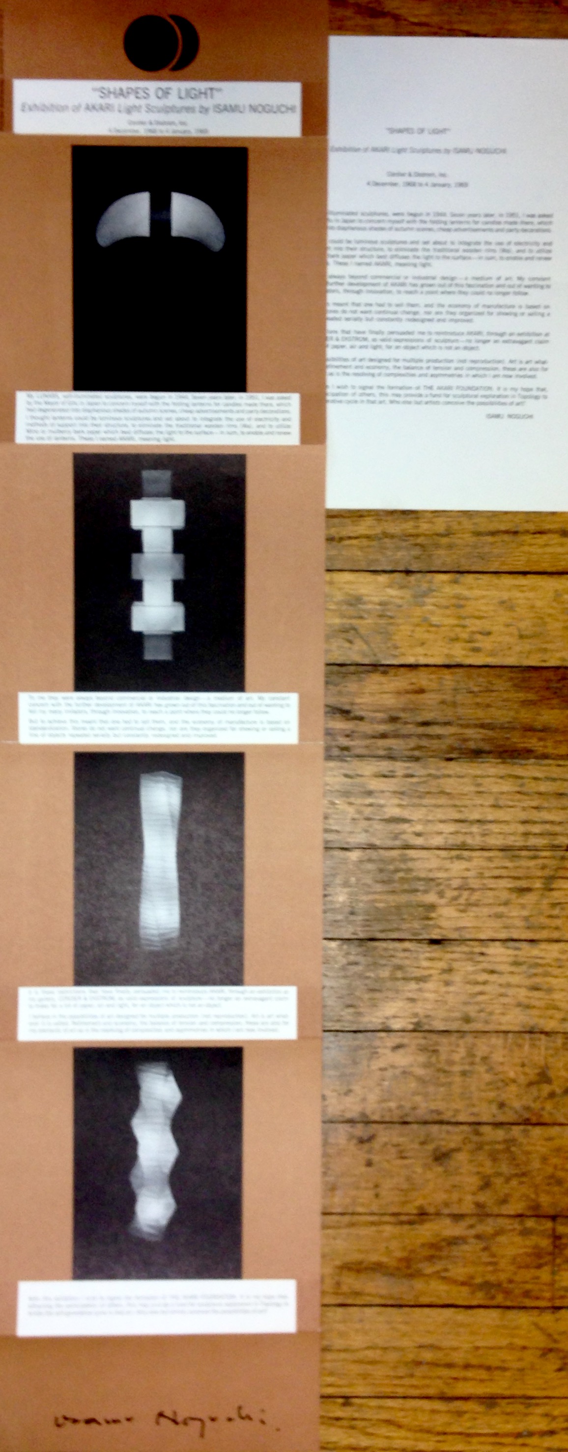 Isamu Noguchi. “Shapes of Light.” Exhibition of Akari light sculptures by Isamu Noguchi. Cordier & Ekstrom, Inc., 4 December 1968- 4 January 1969