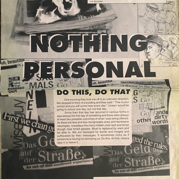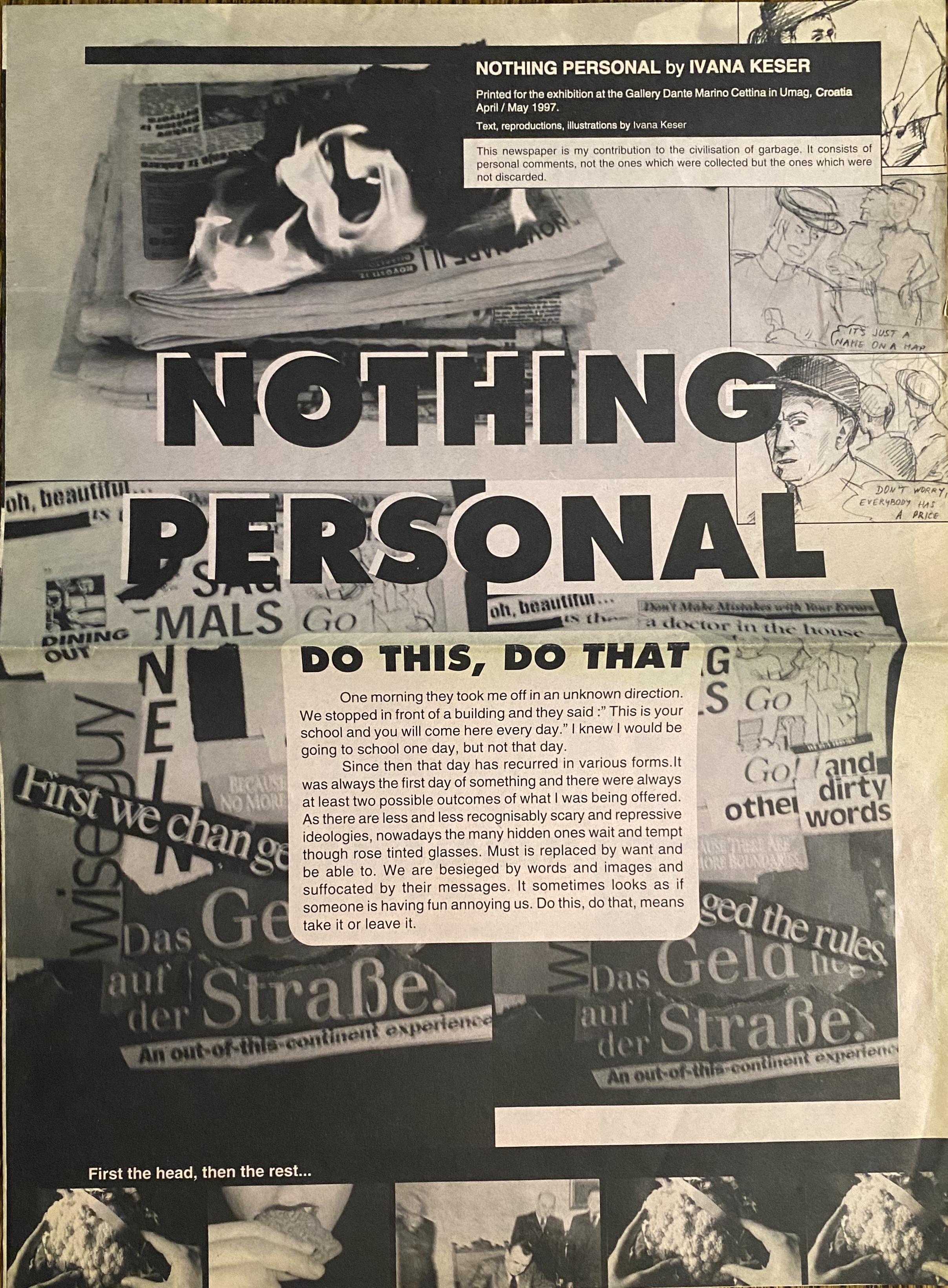 Ivana Keser. Nothing Personal. Printed for the exhibition at the Gallery Dante Marino Cattina, Umag, April/May 1997