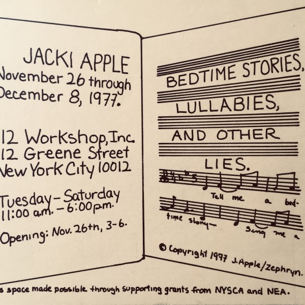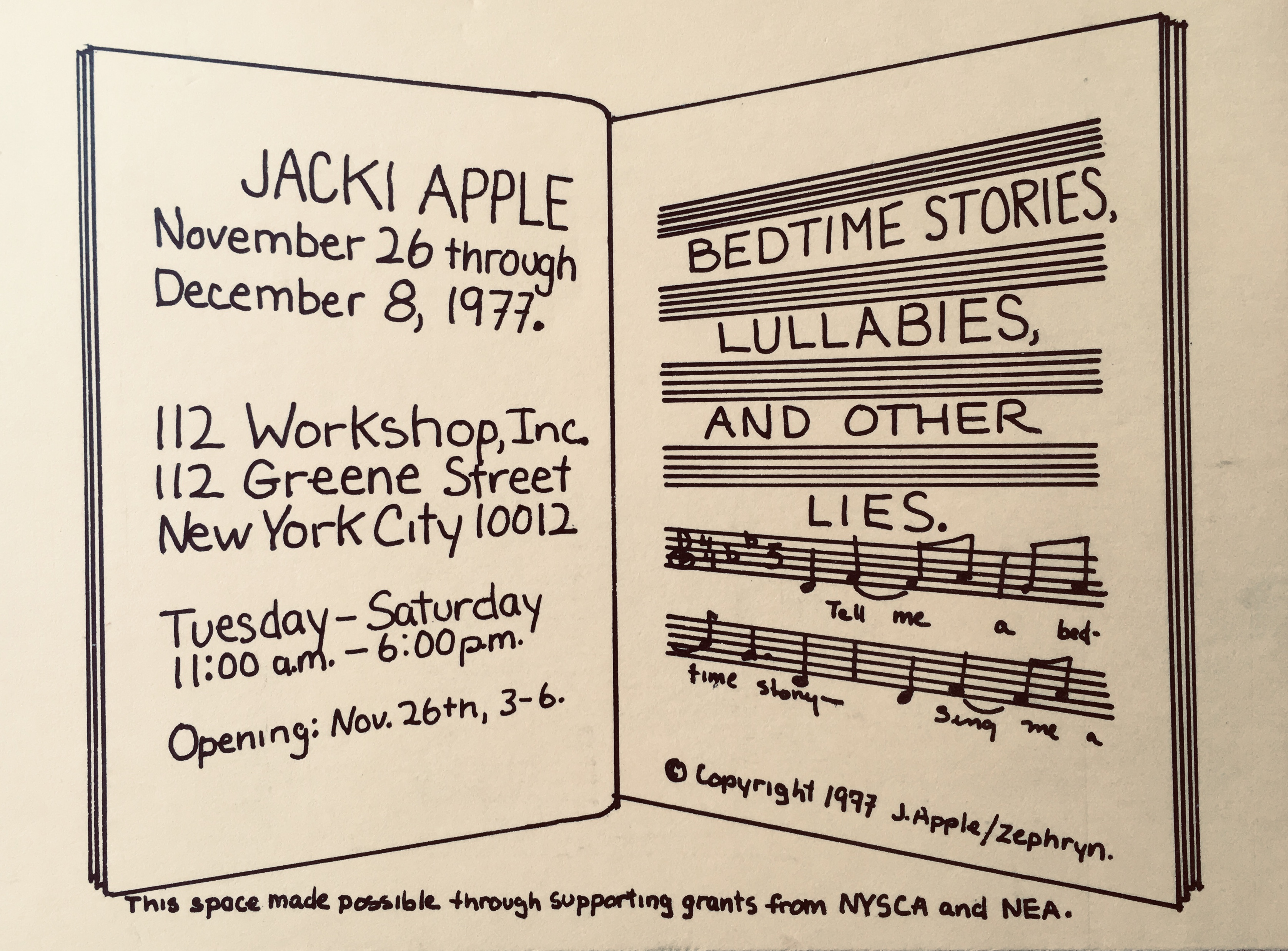 Jacki Apple. Bedtime Stories, Lullabies, and Other Lies. 112 Workshop Inc., New York, November 26 – December 8, 1977