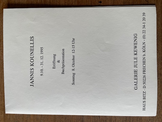 (Jannis Kounellis). Jannis Kounellis. Galerie Julie Kewenig, 9.10. – 31. 12. 1995