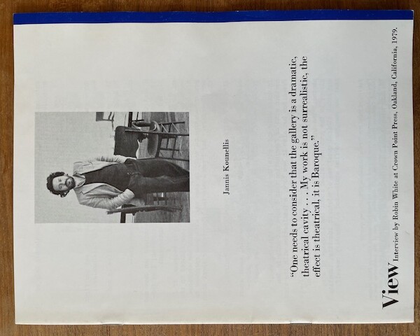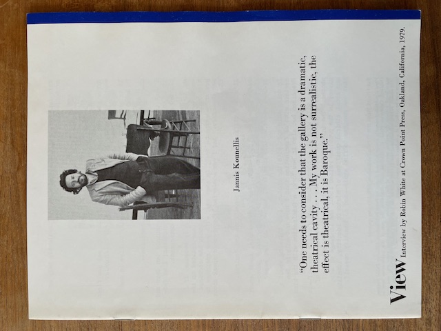 (Jannis Kounellis). Jannis Kounellis. Oakland, California: Point Publications, March 1979. (View. Volume 1 / #10)