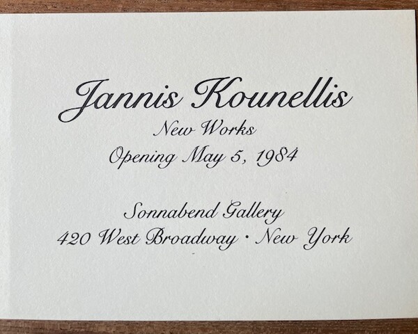 Jannis Kounellis. New Works. Sonnabend Gallery, New York. Opening May 5, 1984