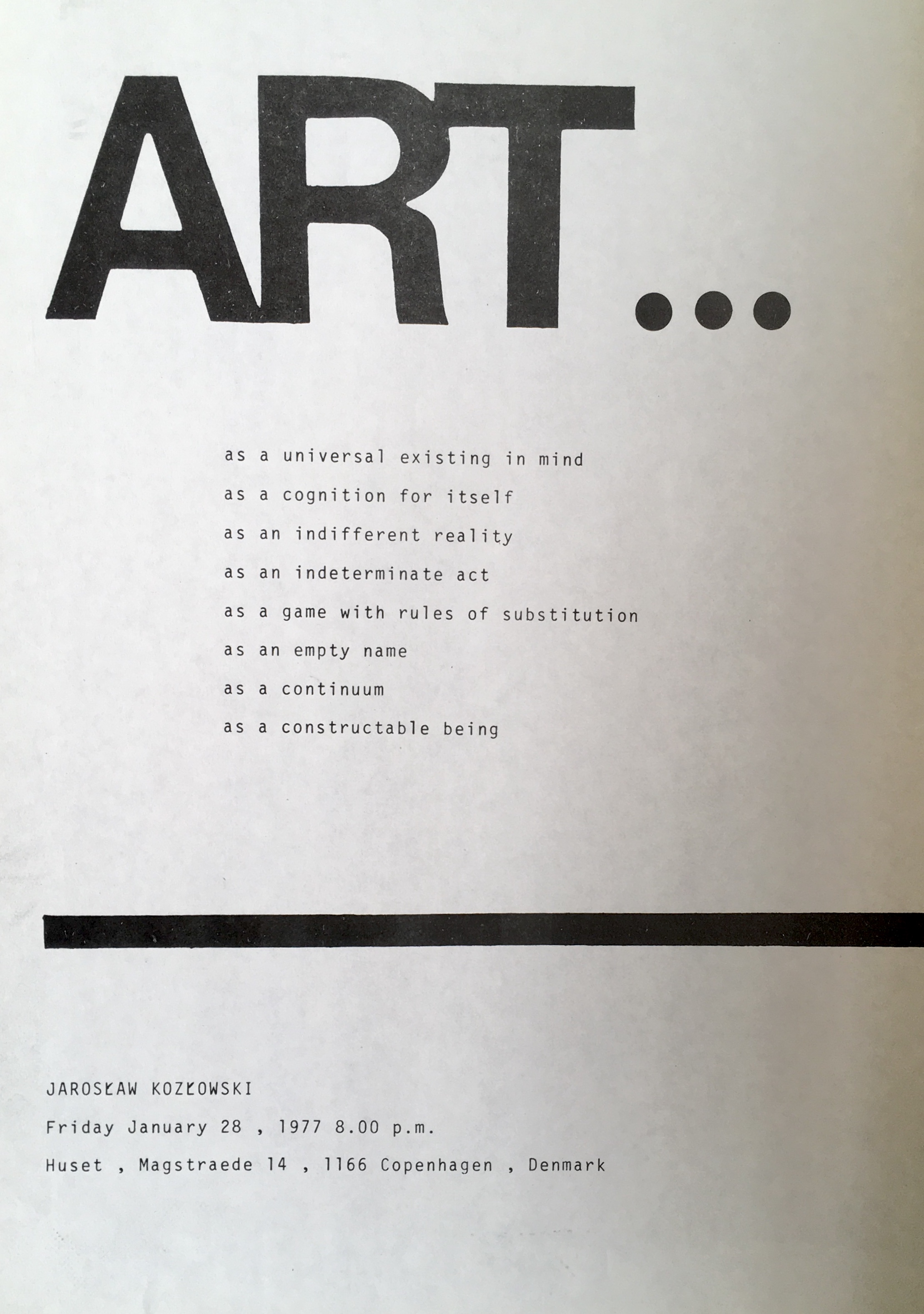 Jarosław Kozłowski. Art… Huset, Magstraede 14, Copenhagen, January 28, 1977