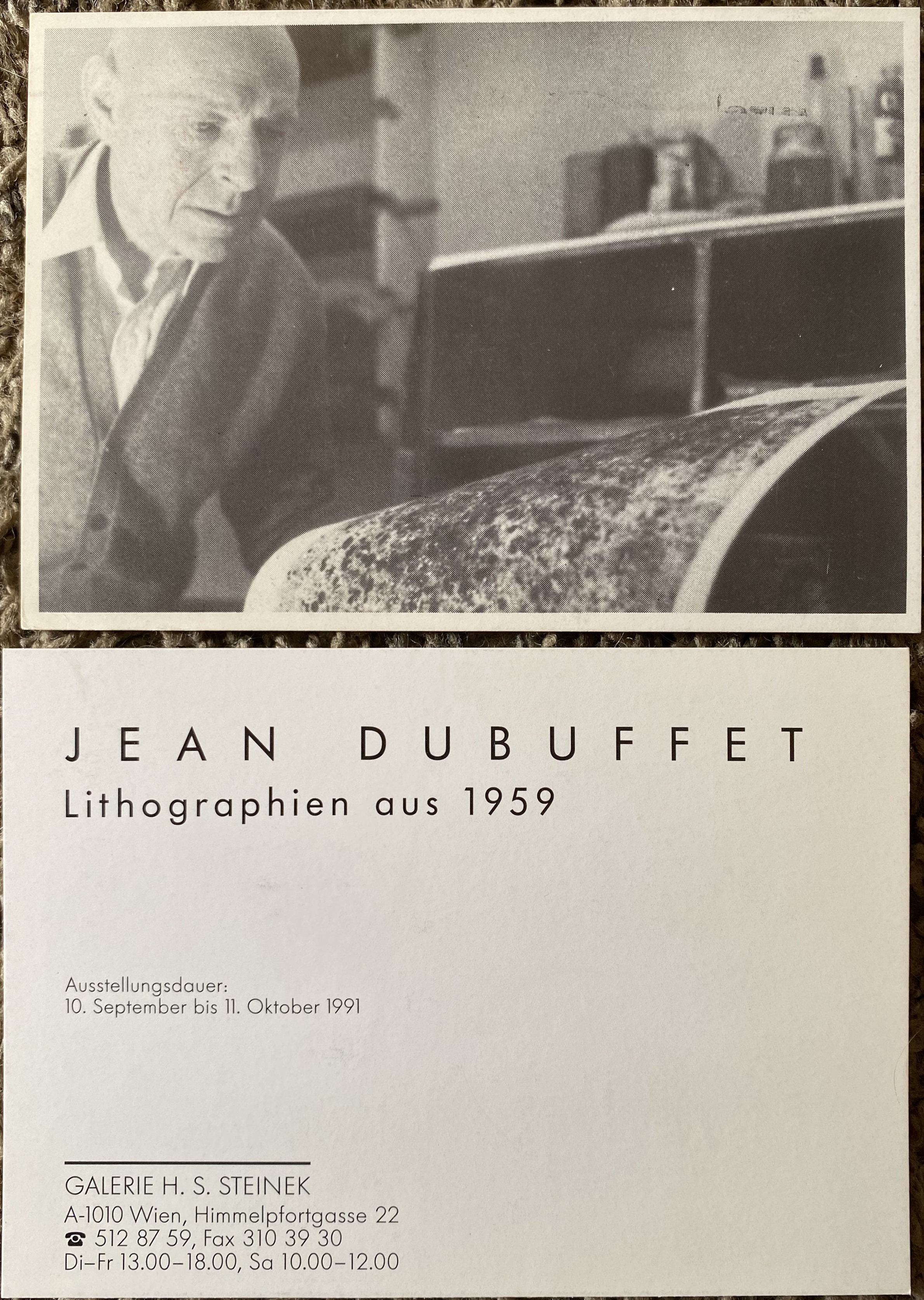 Jean Dubuffet. 2 exhibition cards, Galerie H.S. Steinek, Wien