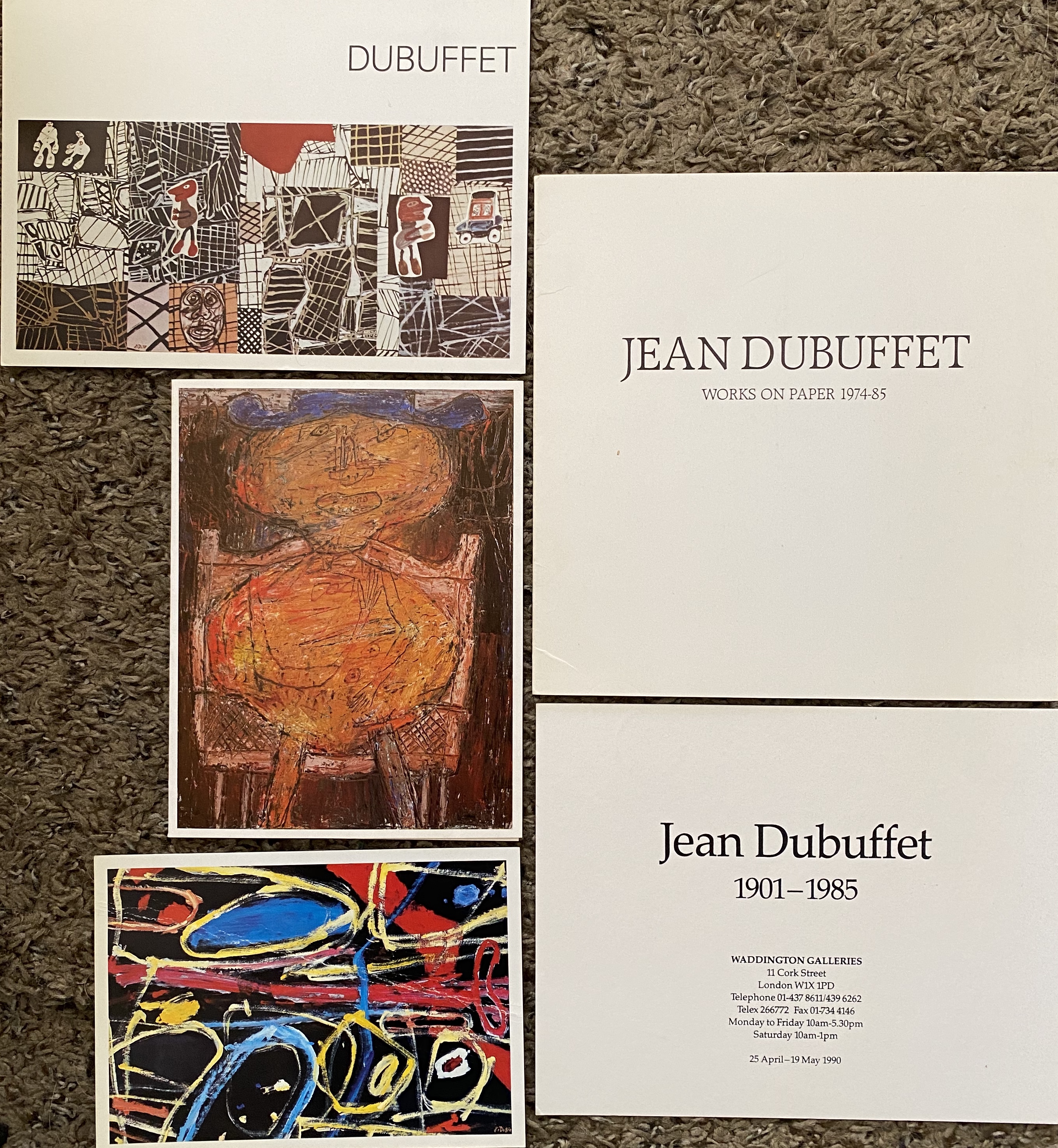 Jean Dubuffet. 5 exhibition announcements, Waddington Galleries, London, 1980-1990