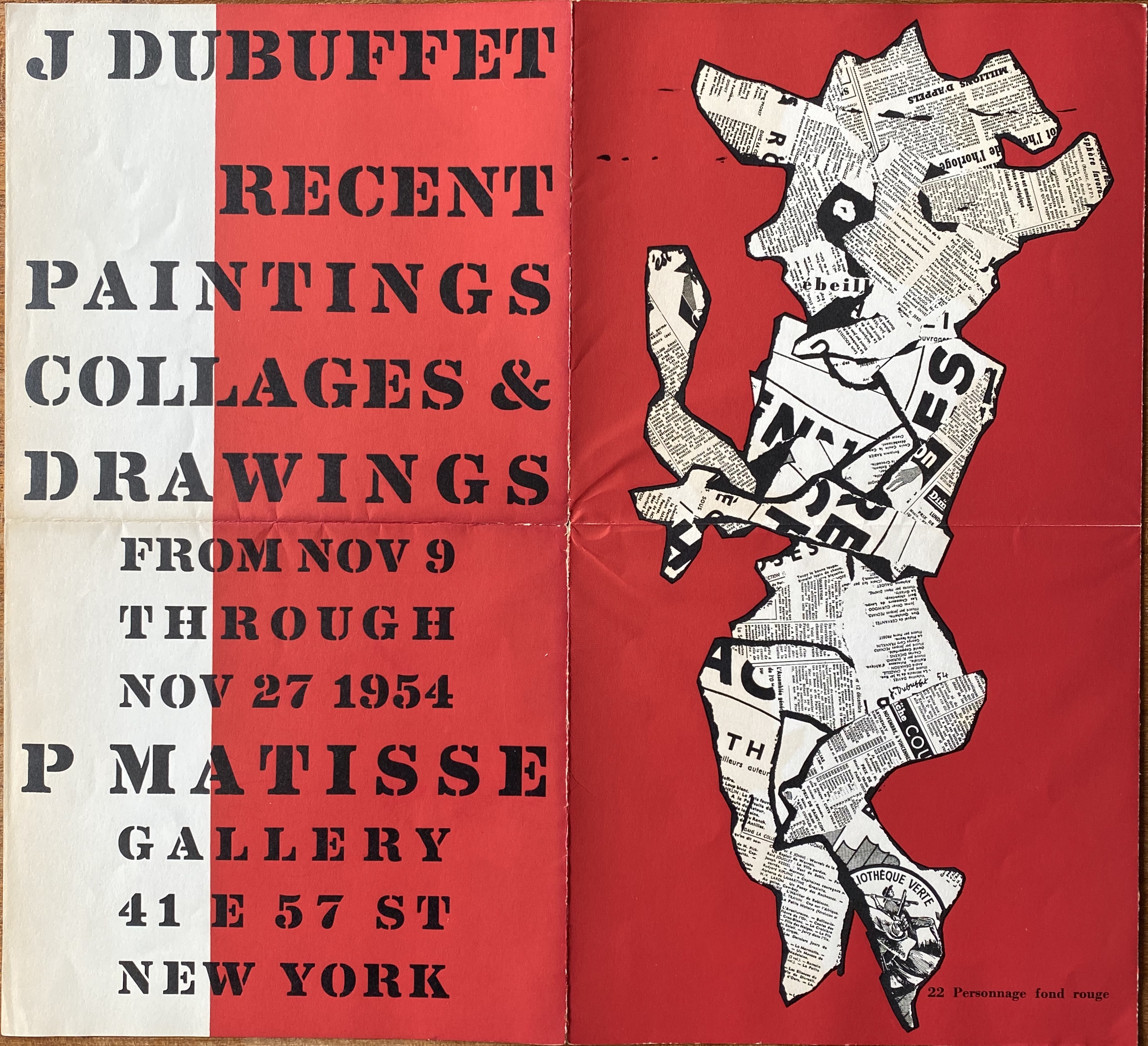 (Jean Dubuffet). J. Dubuffet. Recent Paintings Collages & Drawings. P Matisse Gallery, New York, November 9-27, 1954