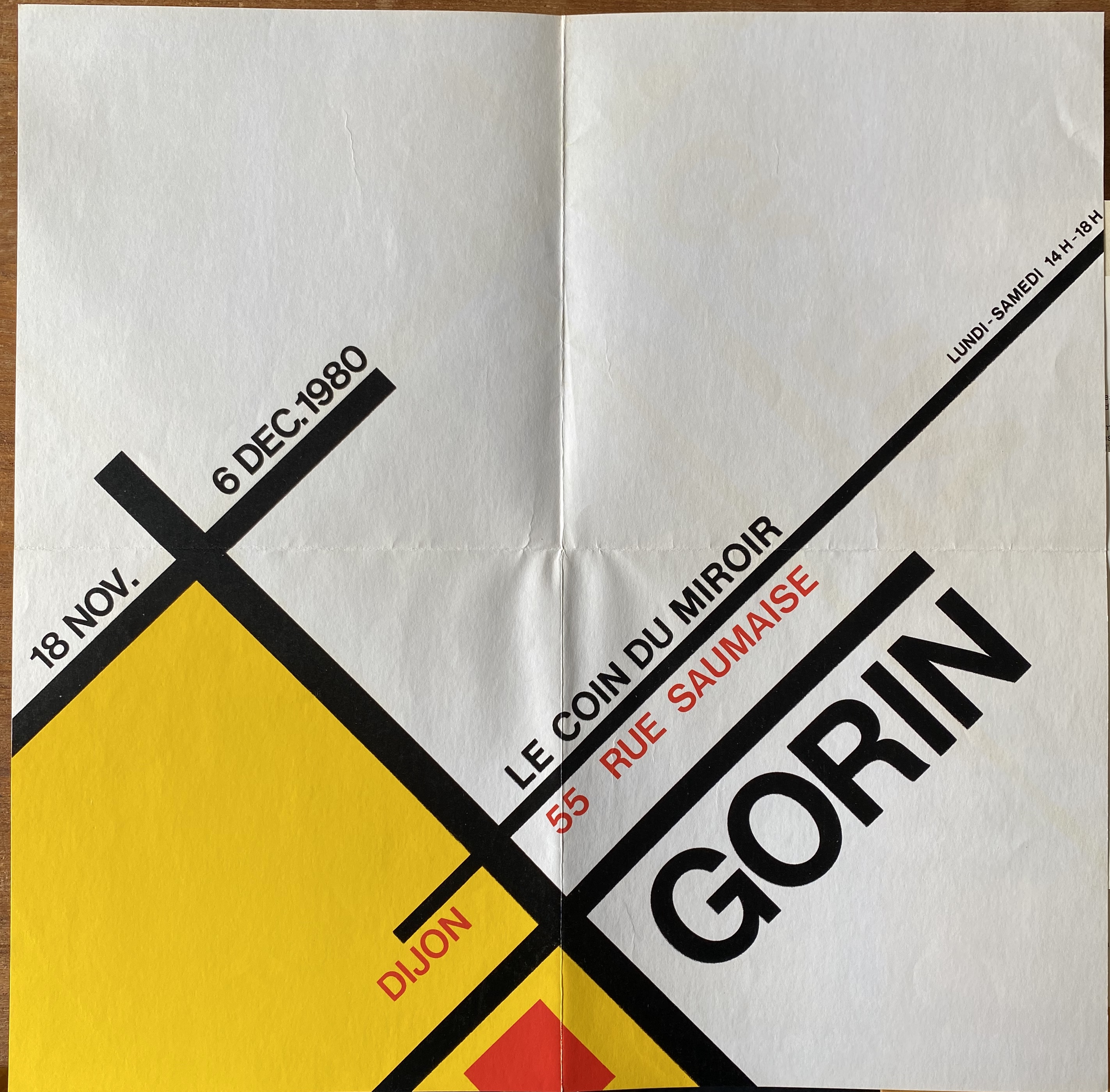 (Jean Gorin). Gorin. Le Coin du Miroir, Dijon, 18 novembre – 6 décembre 1980