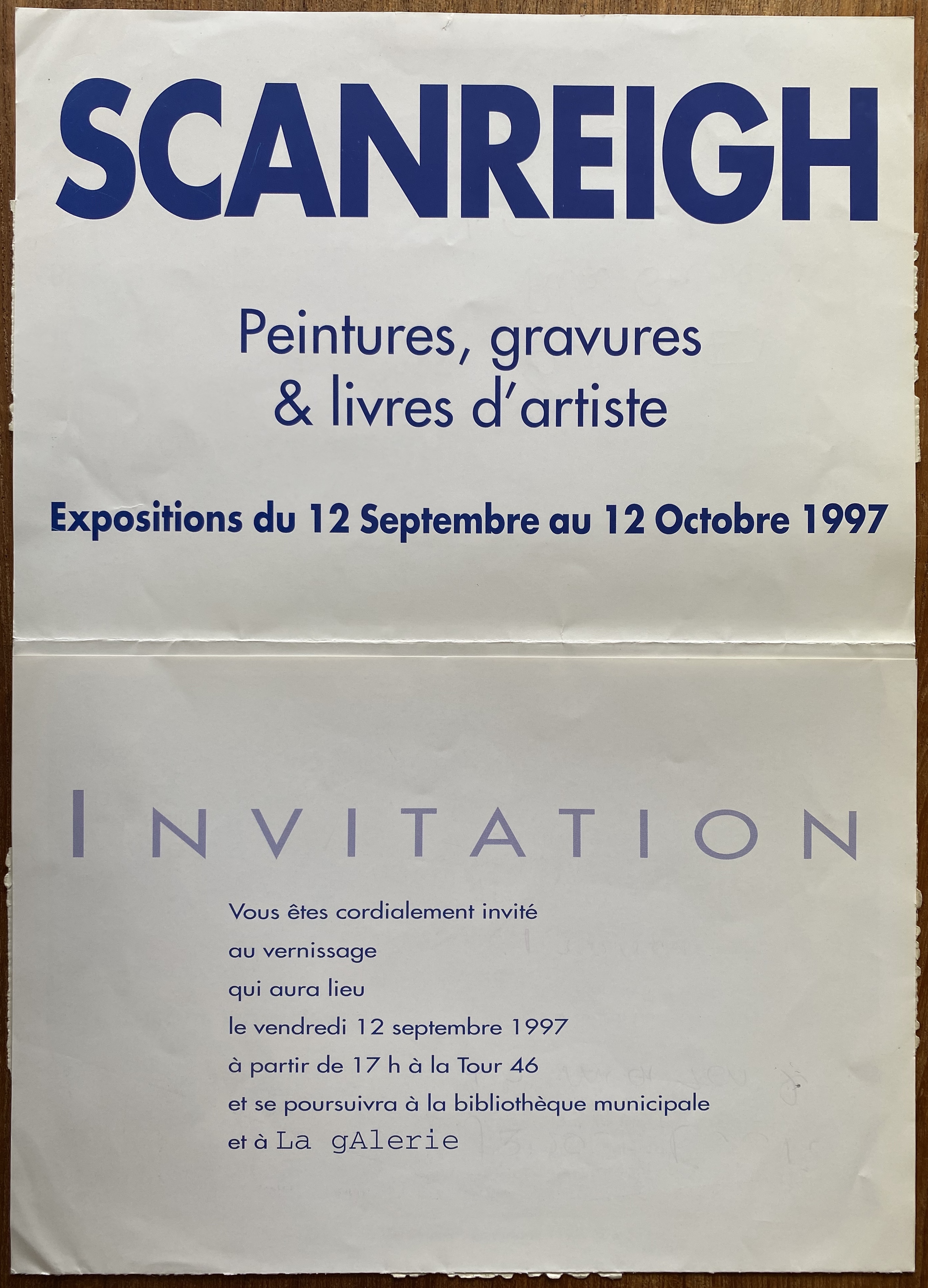 Jean-Marc Scanreigh. Peintures, gravures & livres d’artiste. Belfort, 12 Septembre – 12 Octobre 1997: Tour 46 / Bibliothèque Municipale / la galerie.