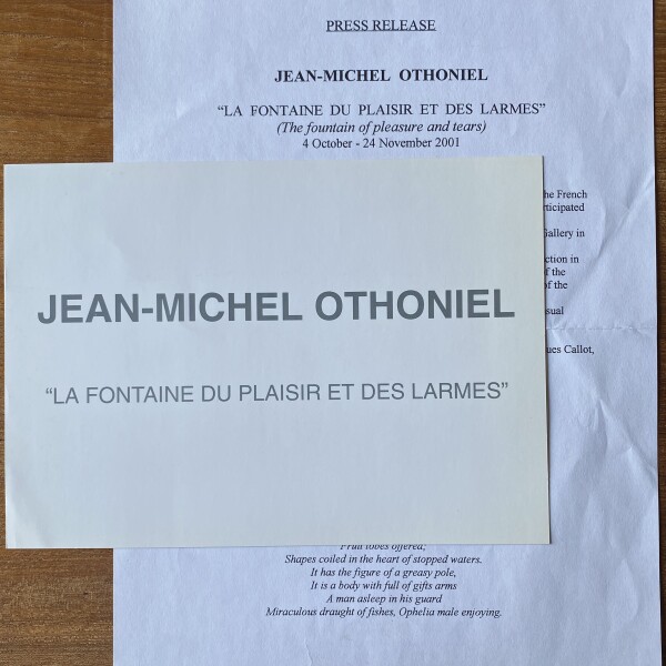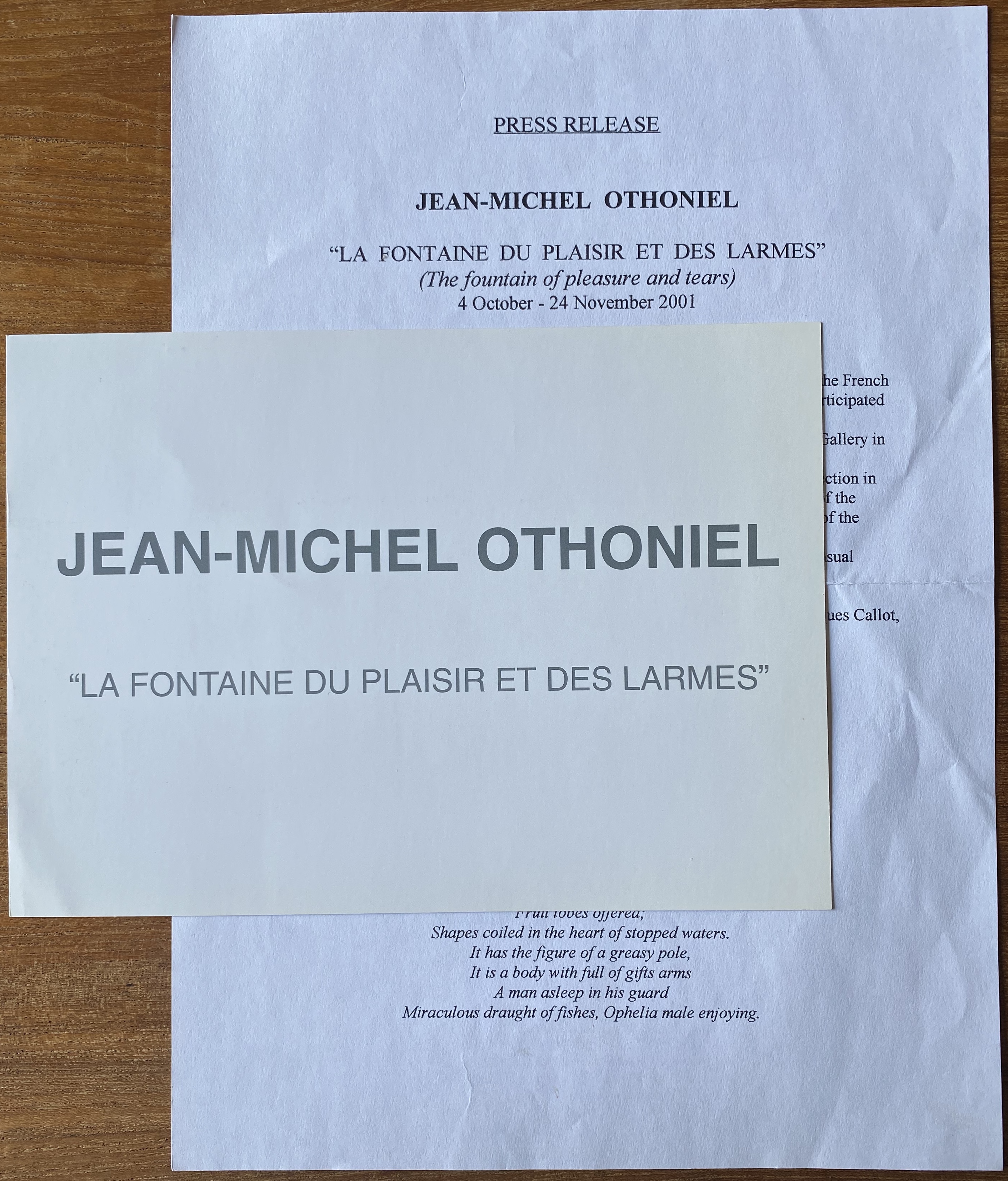 Jean-Michel Othoniel. “La fontaine du plasir et des larmes.” Piece Unique, Paris, 4 octobre 2001