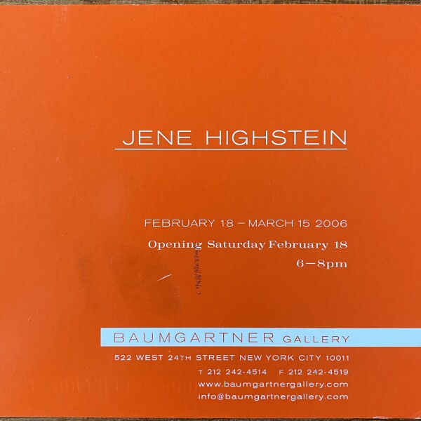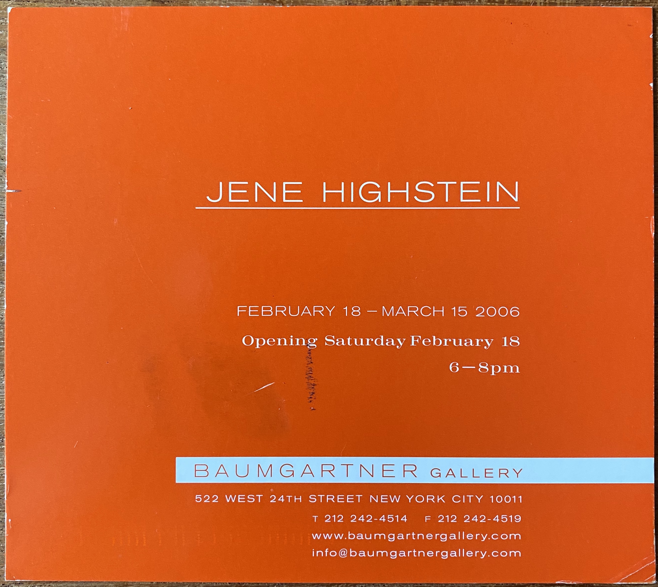 (Jene Highstein). Jene Highstein. Baumgartner Gallery, New York, February 18 – March 15, 2006