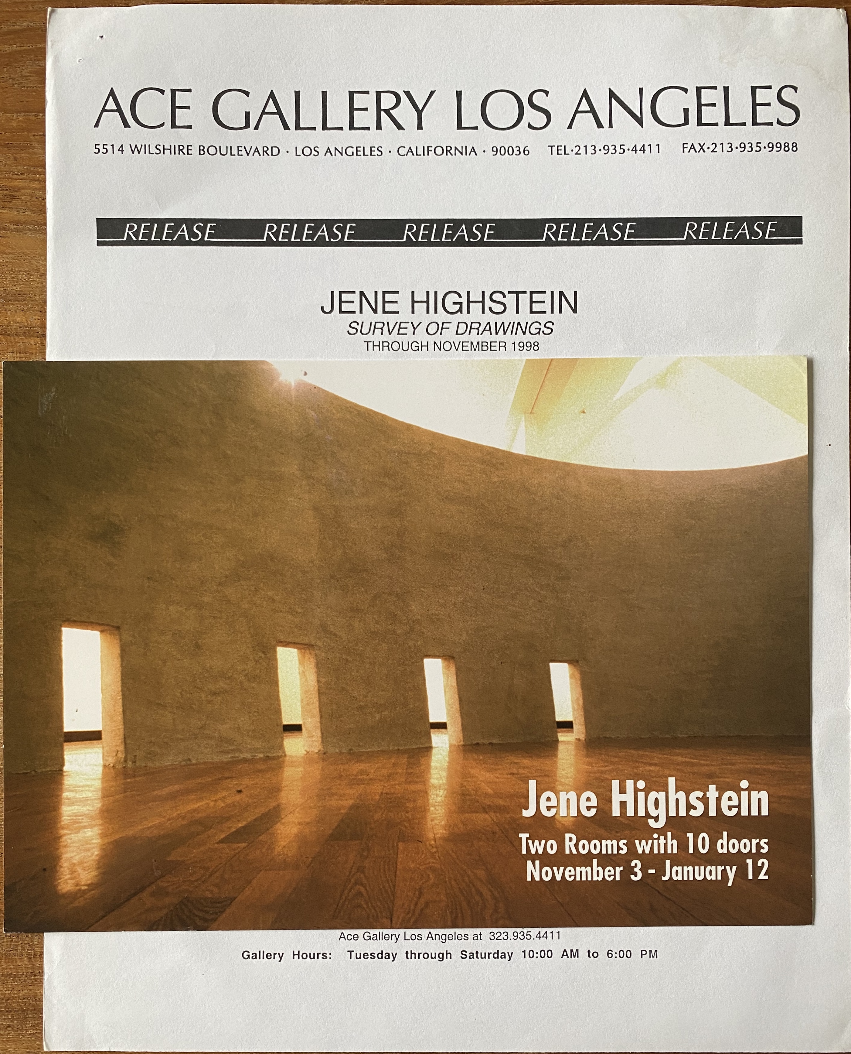 Jene Highstein. Two Rooms with 10 Doors. Art Museum University of Memphis, Memphis, Tennessee. November 3, [2001] – January 12, 2002
