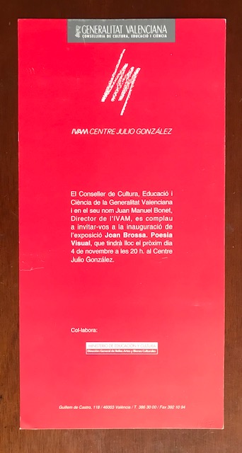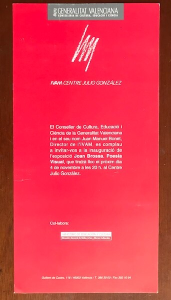 (Joan Brossa). Poesia Visual / Poesia Visual. IVAM Centre Julio Gonzalez, Valencia, 4 de noviembre/ 4 de noviembre [1997]