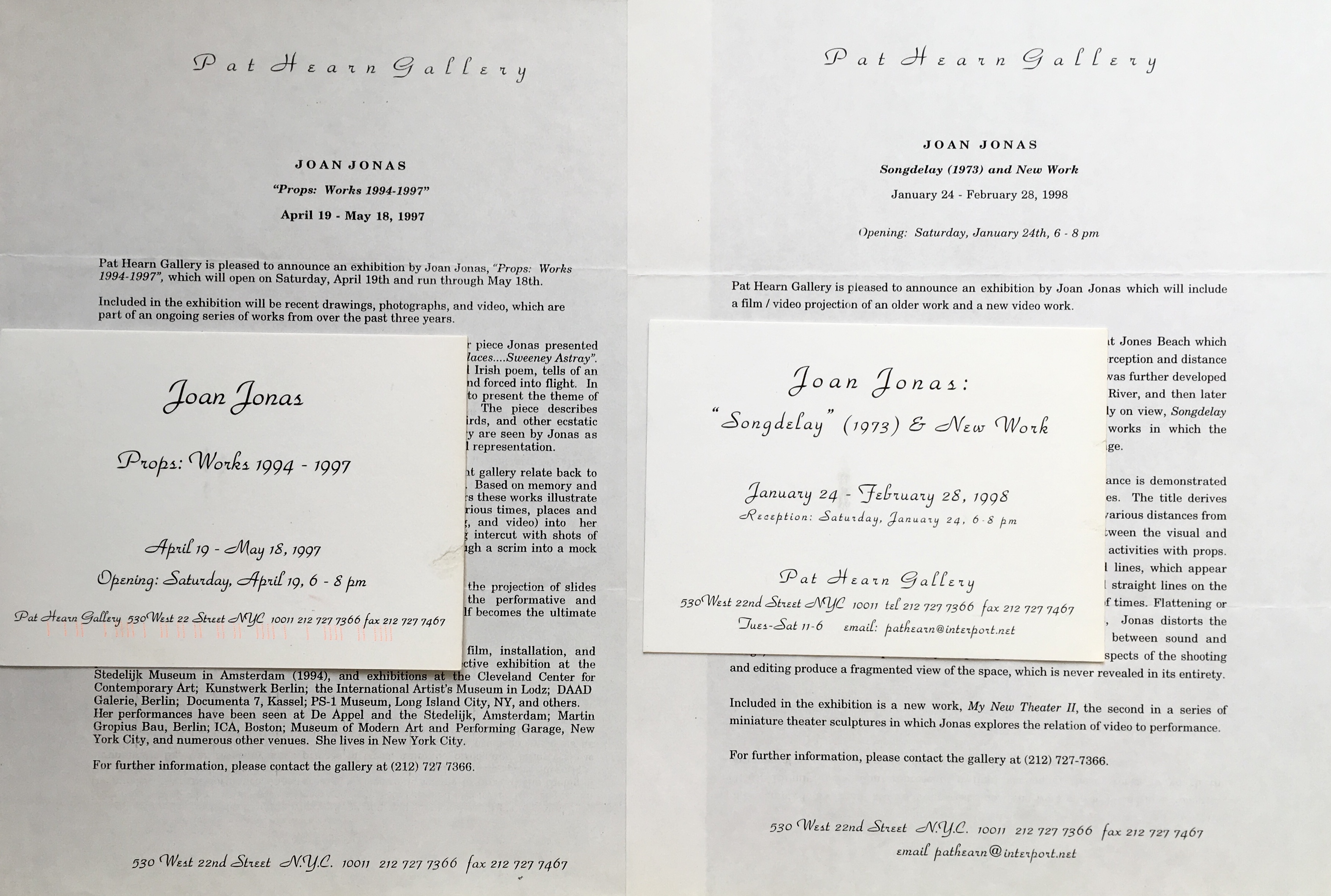 Joan Jonas. 10 documents, Pat Hearn Gallery, New York, 1992 – 2000