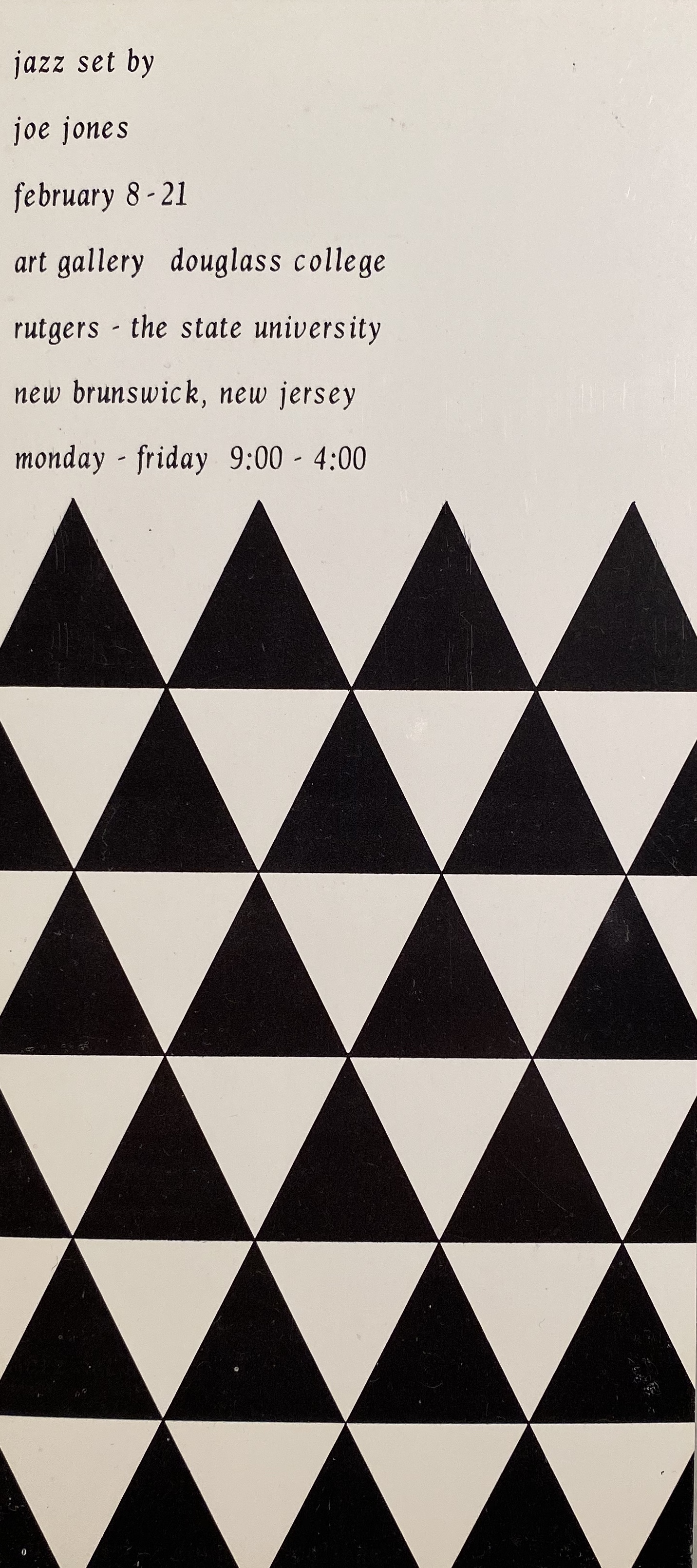 (Joe Jones). Jazz Set by Joe Jones. Art Gallery, Douglass College, Rutgers University, New Brunswick, New jersey, February 8-21, [1966]