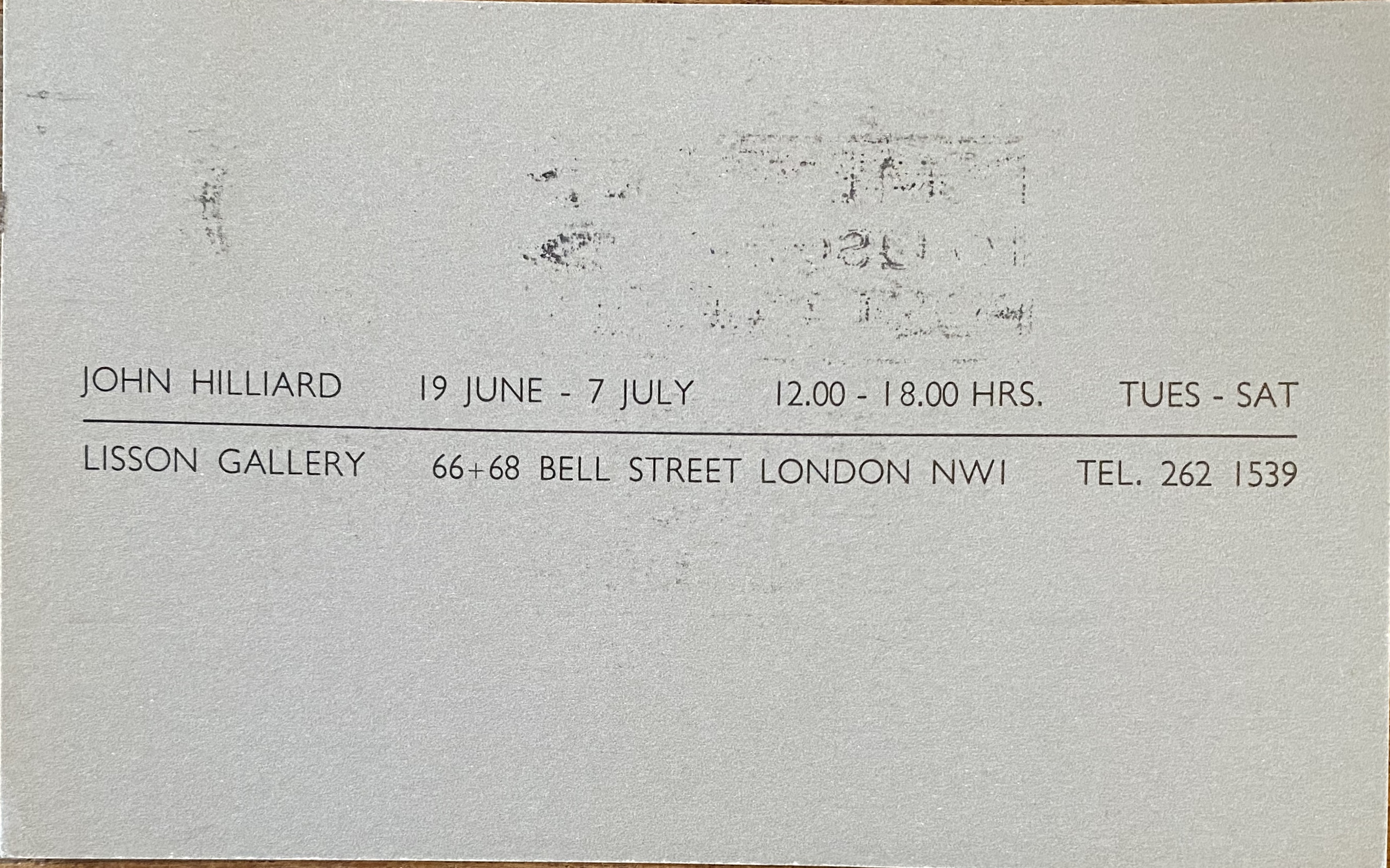(John Hilliard). John Hilliard. Lisson Gallery, London, 19 June – 7 July [1973]