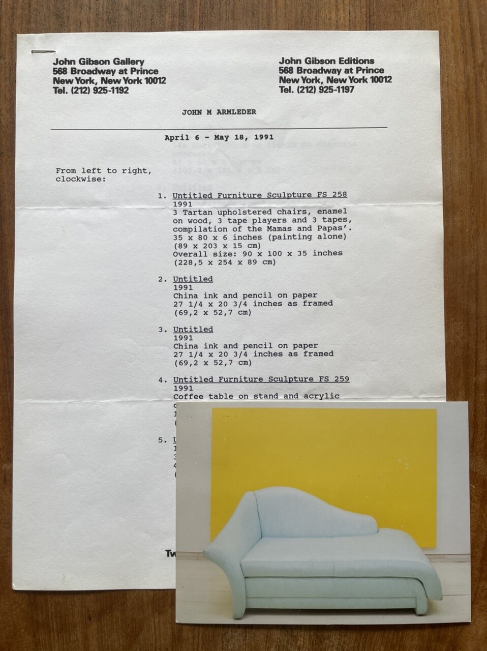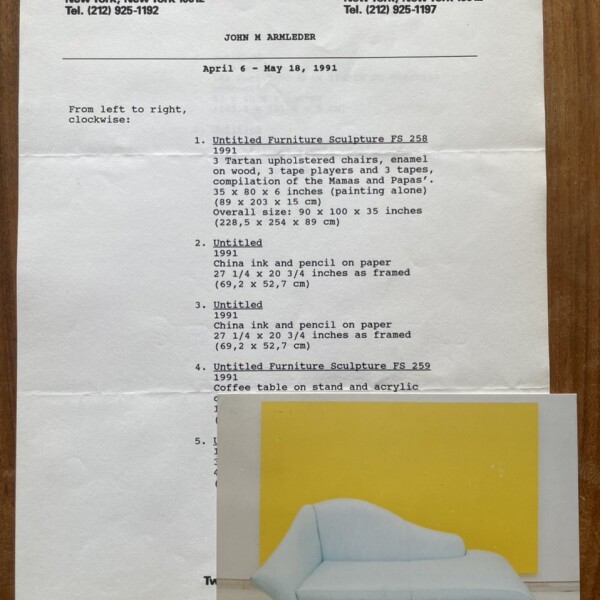 John M Armleder. New Work. John Gibson Gallery, New York, April 6 – May 18, 1991
