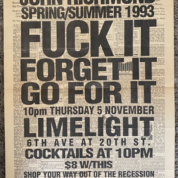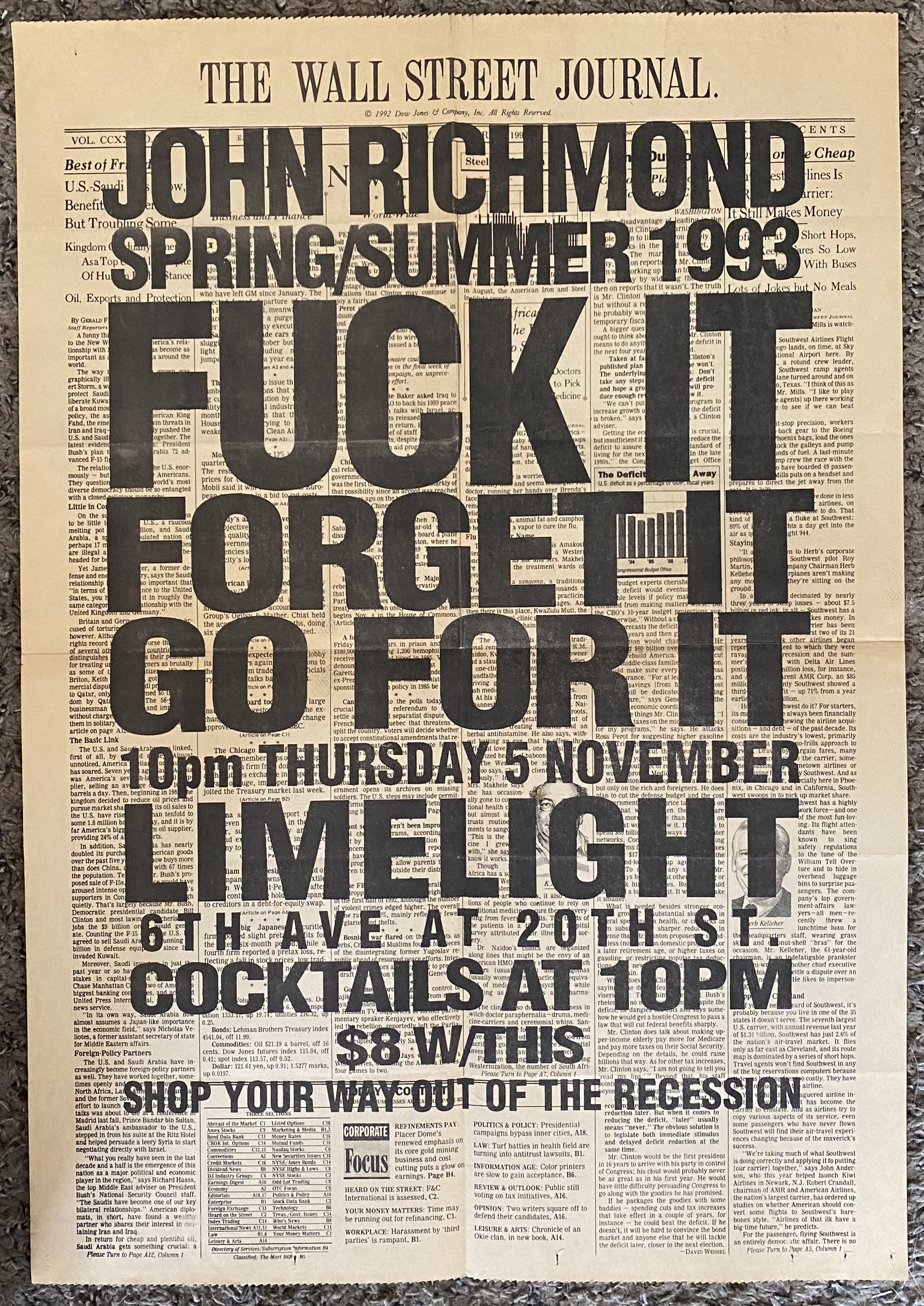 John Richmond. Fuck it/ Forget it/ Go for it. Limelight, New York, 5 November [1992]