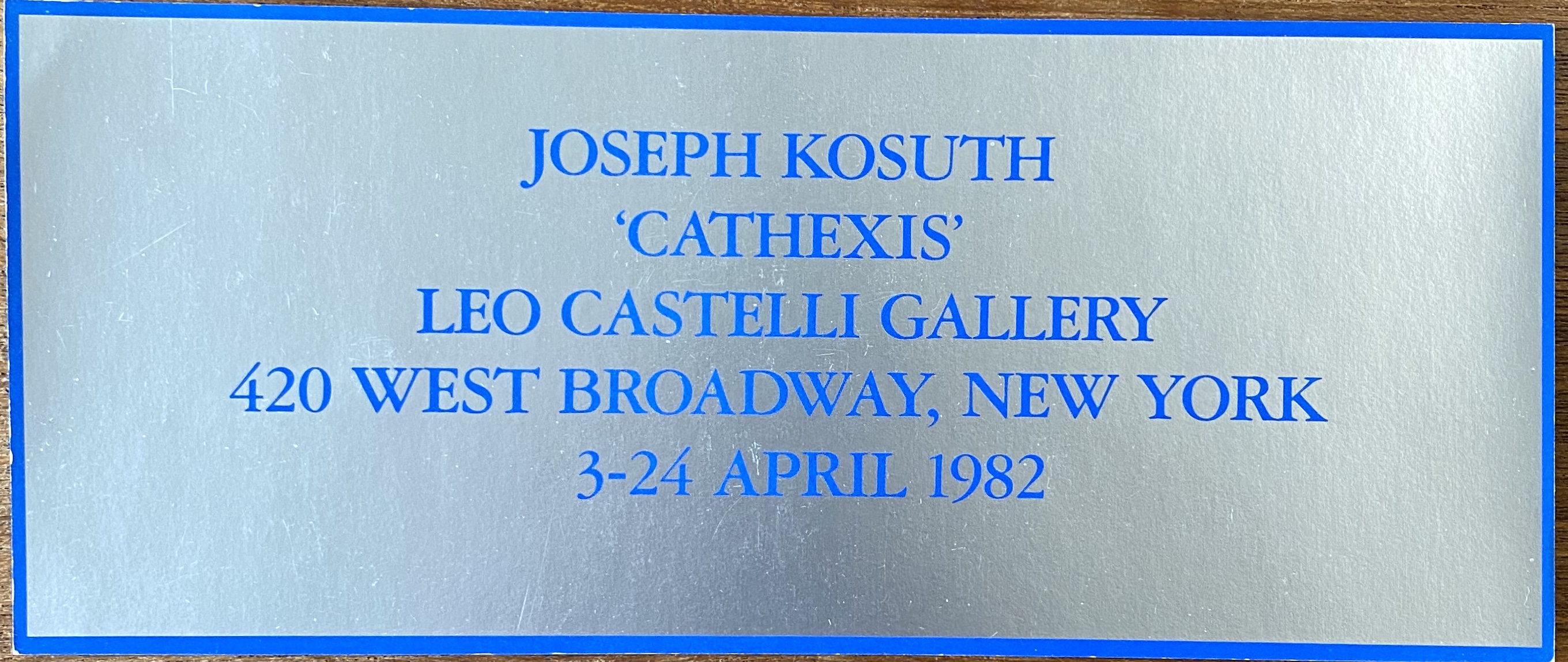 Joseph Kosuth. “Cathexis.” Leo Castelli. Gallery, New York, 3-24 April 1982