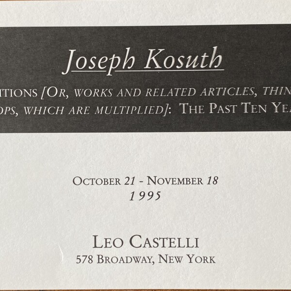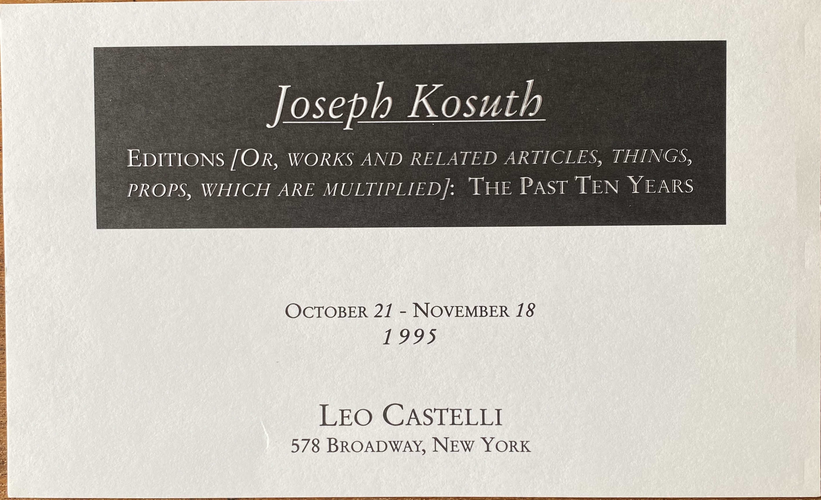 Joseph Kosuth. Editions [Or, Works And Related Articles, Things, Props, Which Are Multiplied]: The Past Ten Years. Leo Castelli, New York, October 31 – November 18, 1995