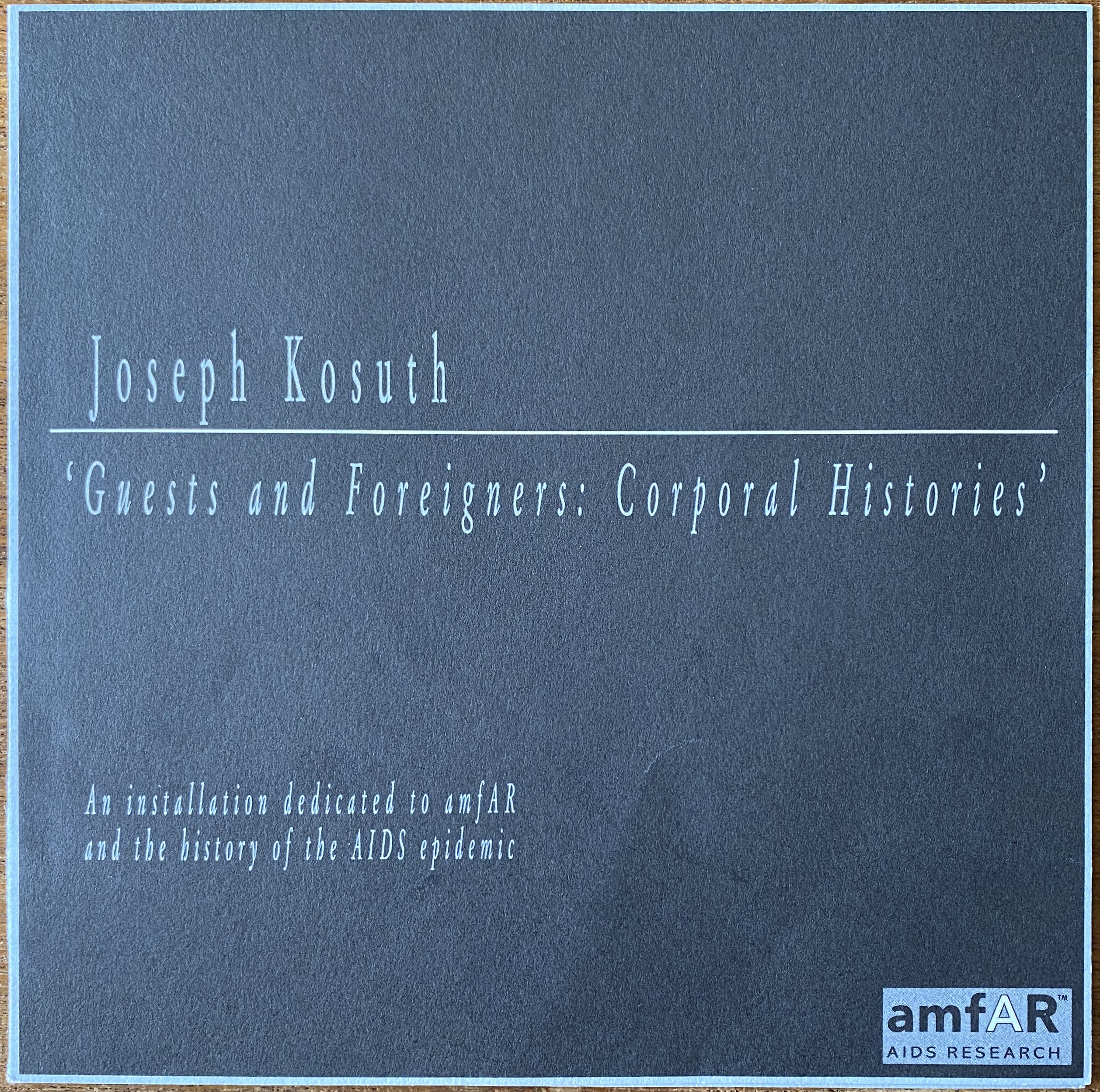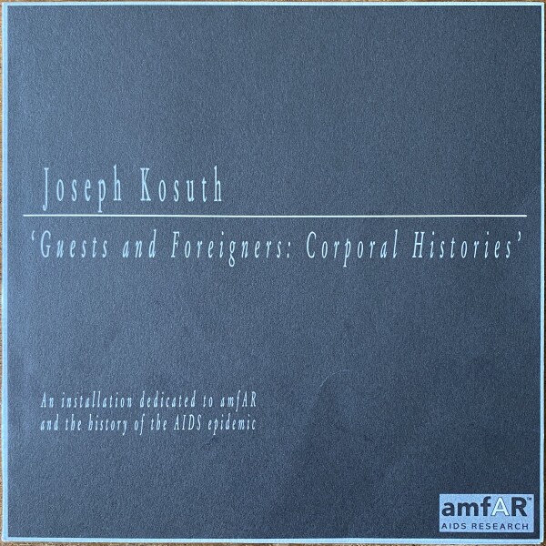 (Joseph Kosuth). “Guests and Foreigners: Corporal Histories.” An installation by Joseph Kosuth. amfAR, 120 Wall Street, New York, March 21, 2000