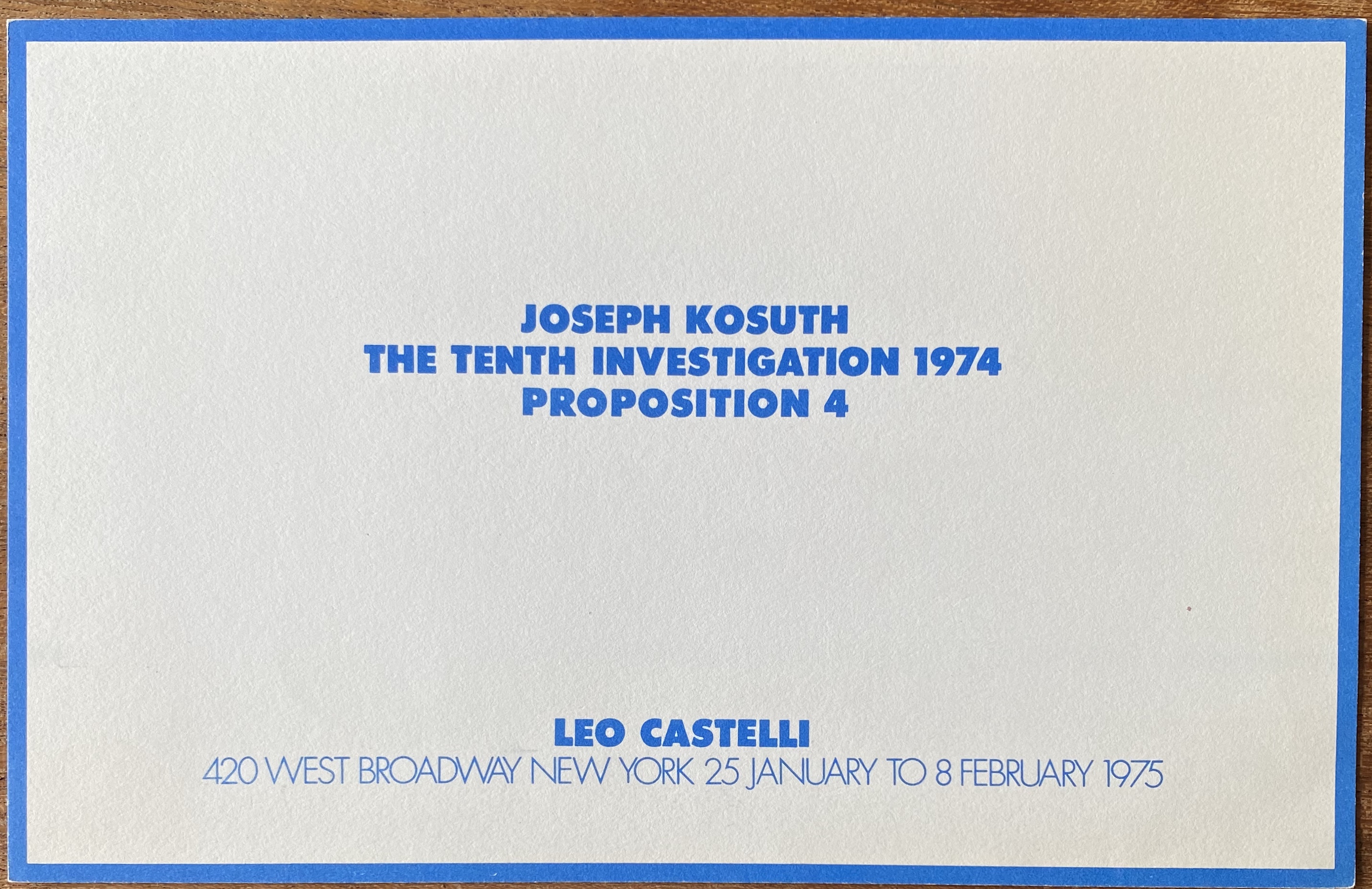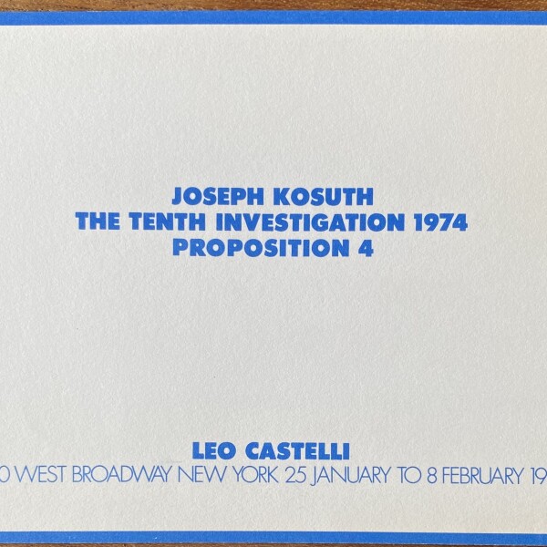 Joseph Kosuth. The Tenth Investigation 1974. Proposition 4. Leo Castelli, New York, 25 January [1974] – 8 February 1975