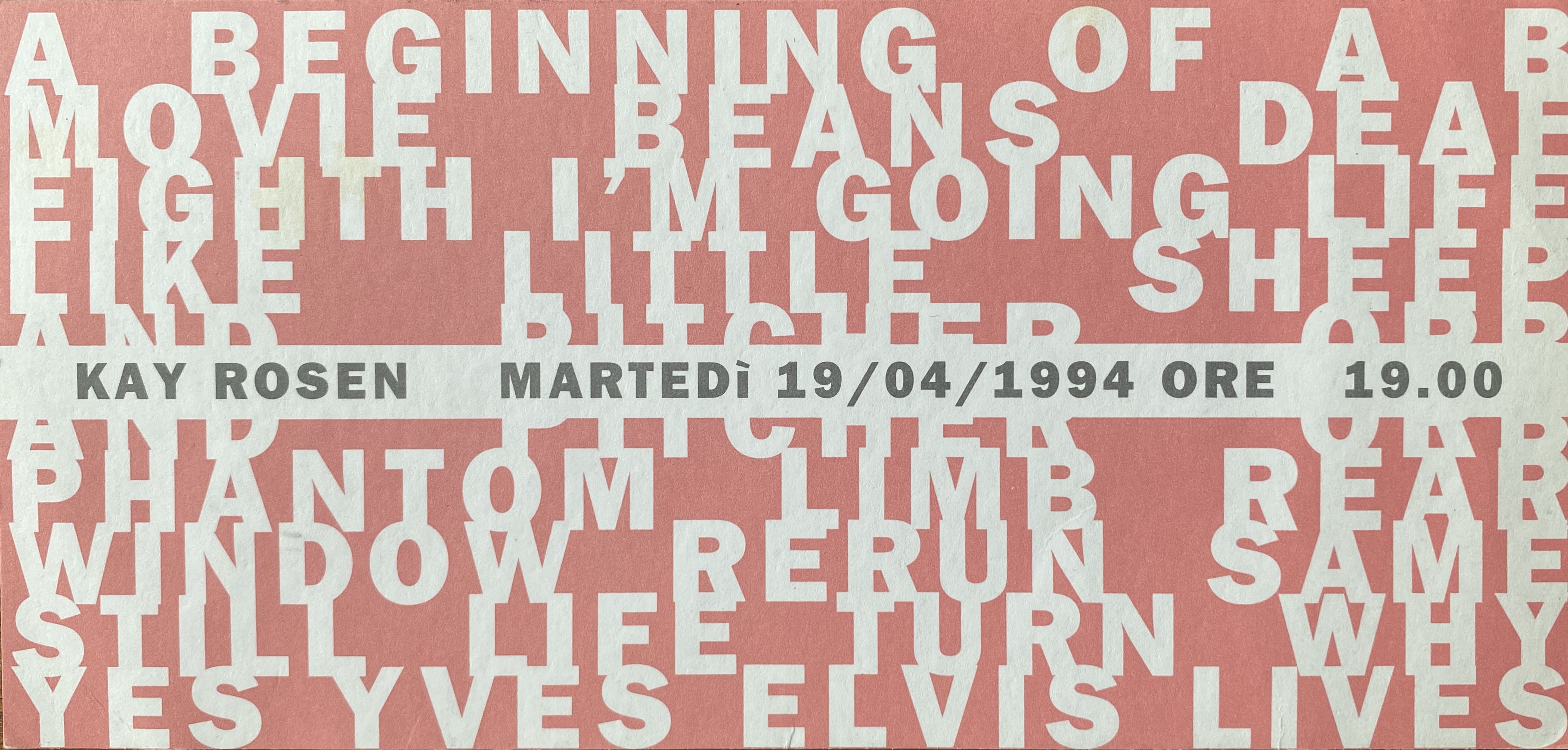 (Kay Rosen). Kay Rosen. Galleria Massimo De Carlo, Milano, 19.04.1994