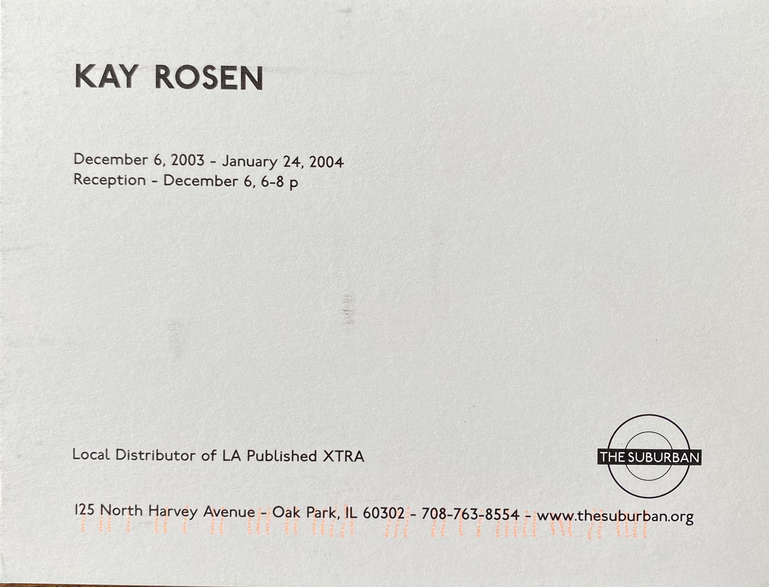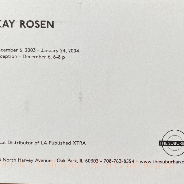 (Kay Rosen). Kay Rosen. The Suburban, Oak Park, Illinois, December 6, 2003 – January 24, 2004