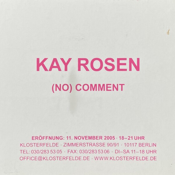 Kay Rosen. (No) Comment. Klosterfelde, Berlin, Eröffnung: 11. November 2005
