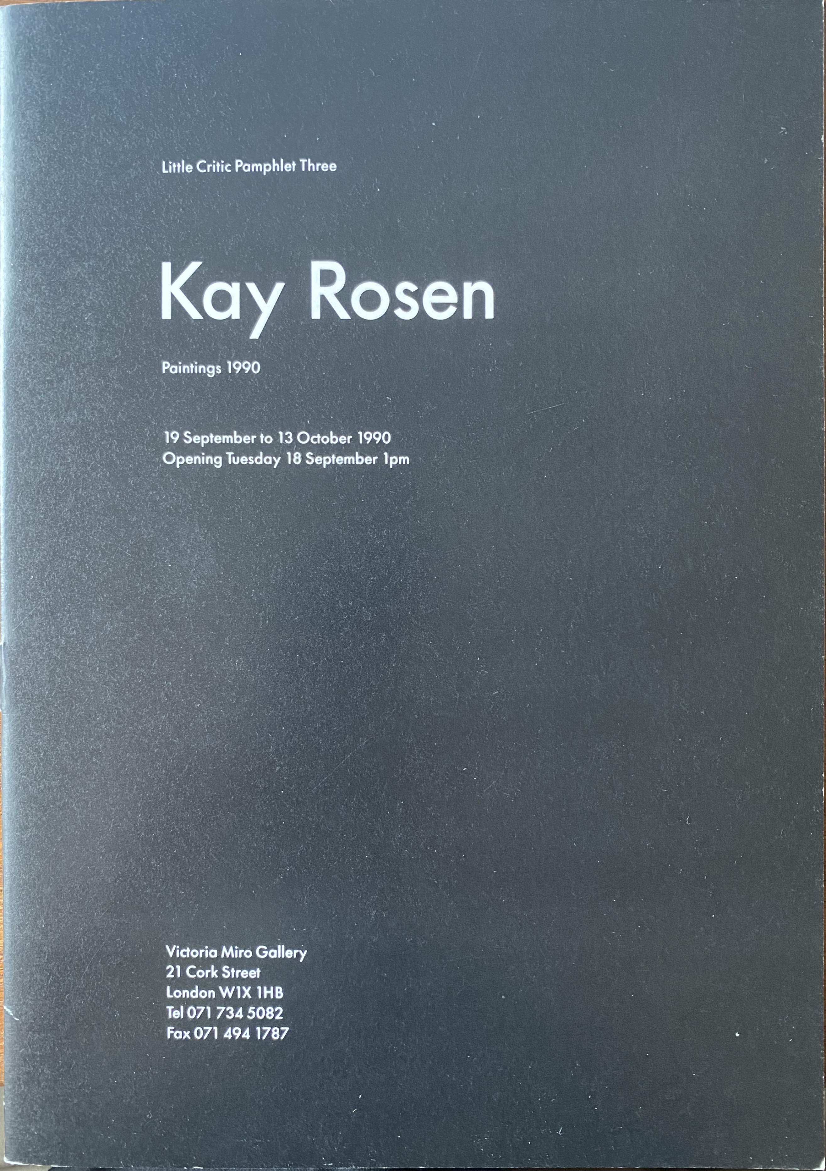 Kay Rosen. Paintings. Victoria Miro Gallery, London, 19 September – 13 October 1990
