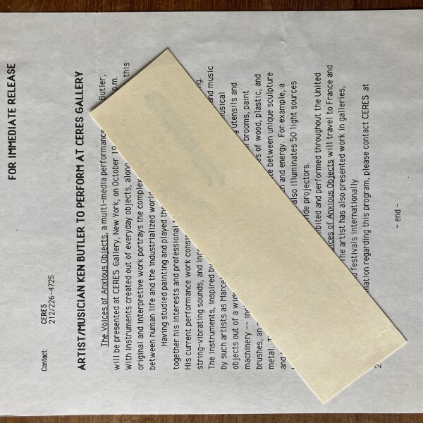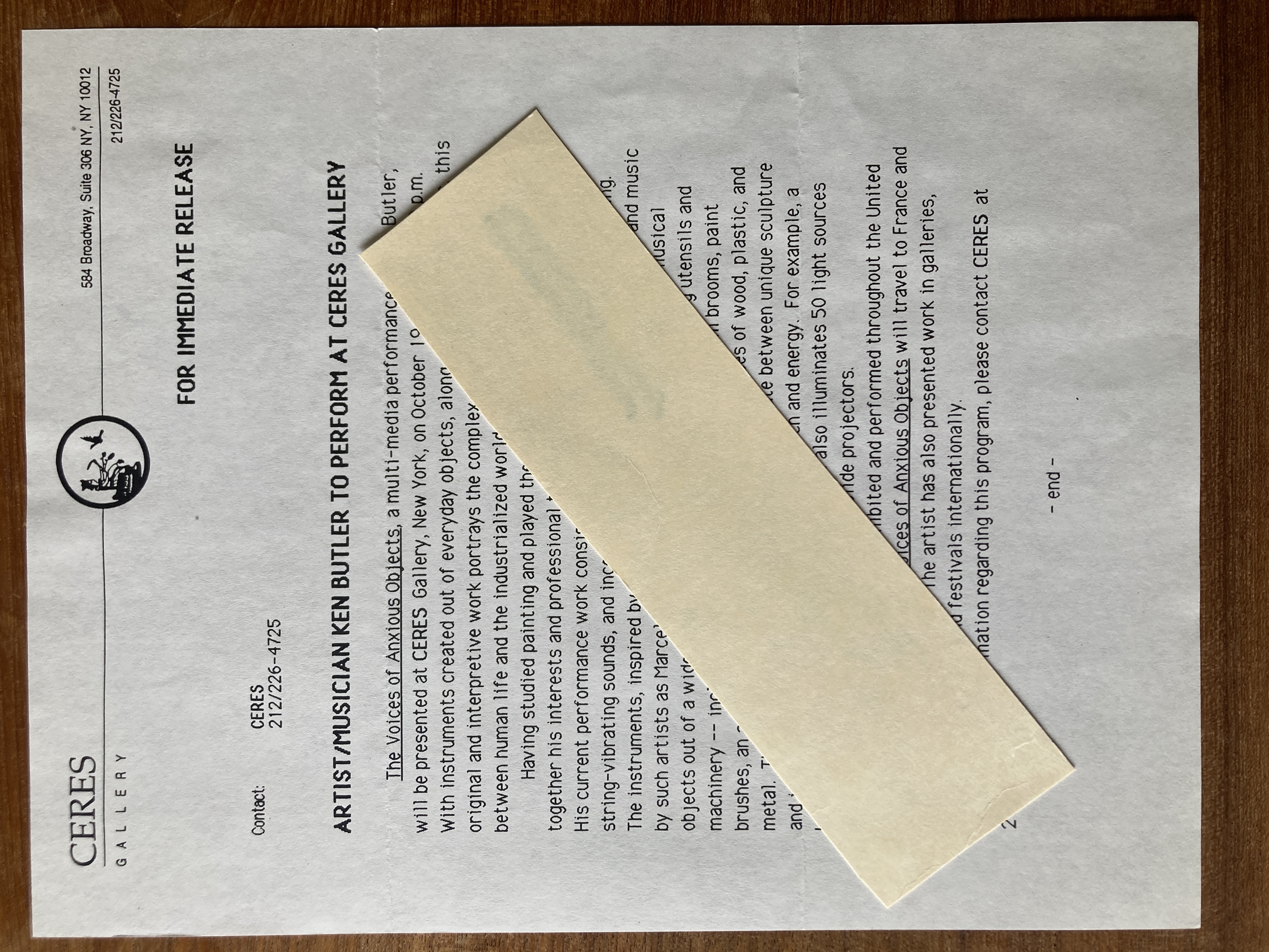 (Ken Butler). Artist / Musician Ken Butler to Perform at Ceres gallery. Ceres Gallery, October 19, 1994.